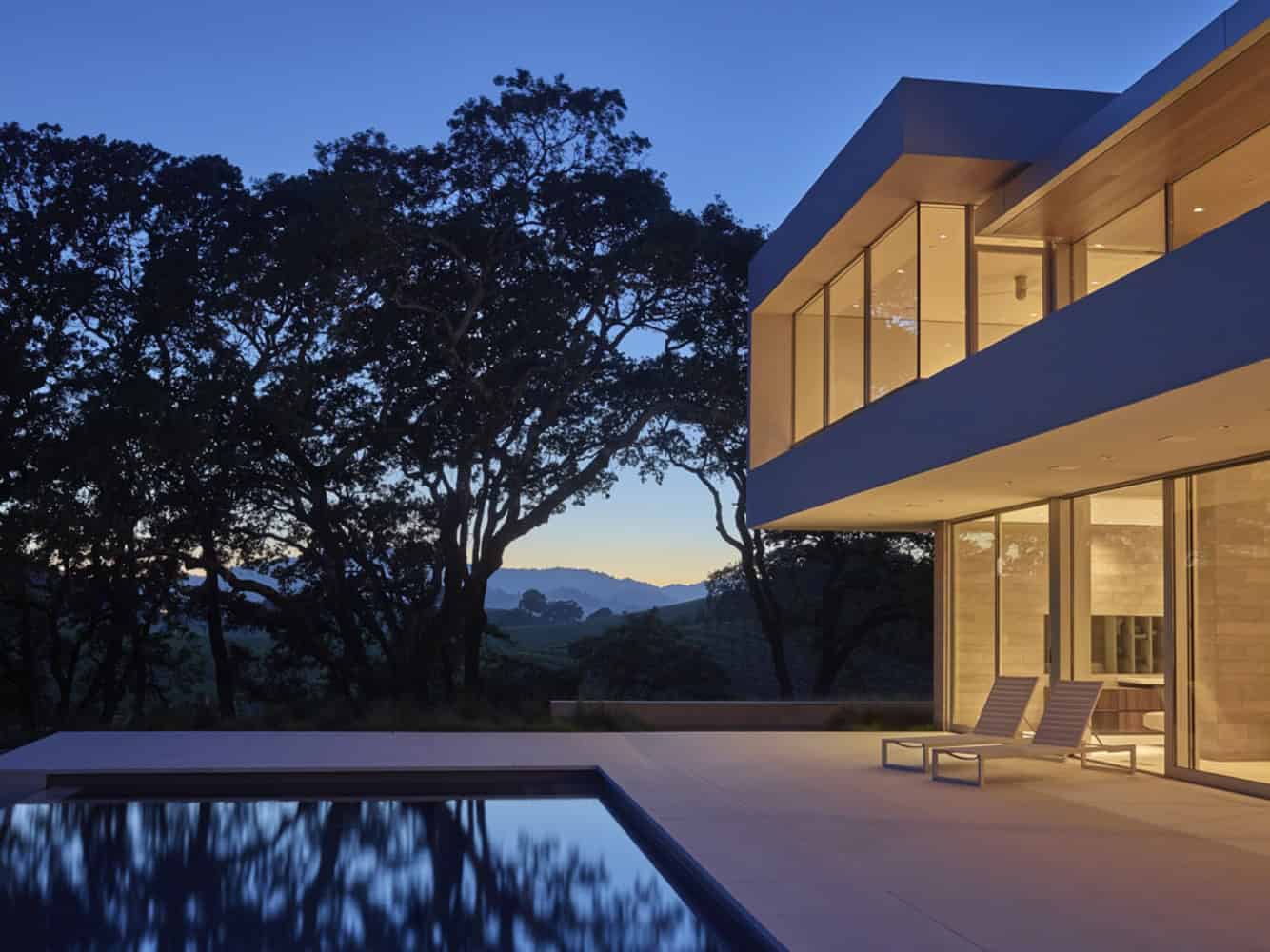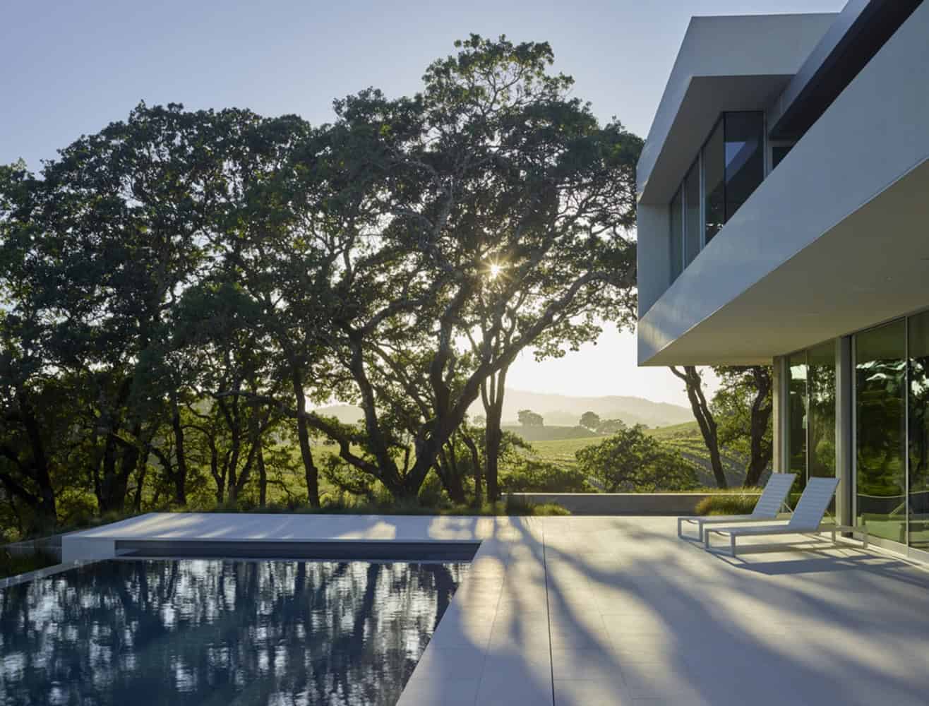 The Retrospect Vineyards Home is a luxurious, contemporary residence that is located on a working vineyard. It was designed by Swatt Miers Architects whose name might be familiar to you from the Vidalakis Residence project that we featured on our site. It is located in Windsor, California on a site that takes advantage of its beautiful country setting, creating panoramic vistas for the residents of this home.