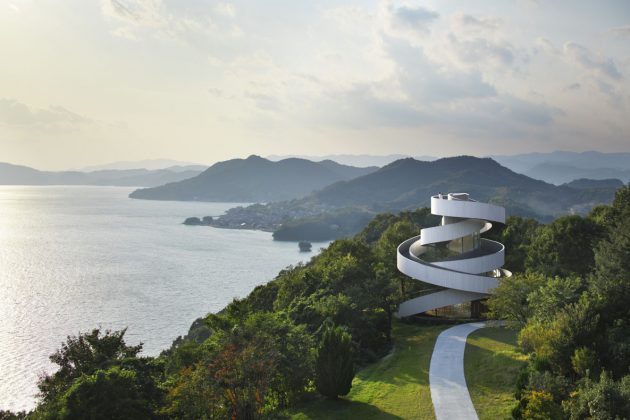 Hiroshi Nakamura & NAP Architects have designed the Ribbon Chapel in the grounds of a luxury resort in Hiroshima, Japan. This wedding chapel has been designed as a double spiral configuration formed out of two separate sets of stairways.
