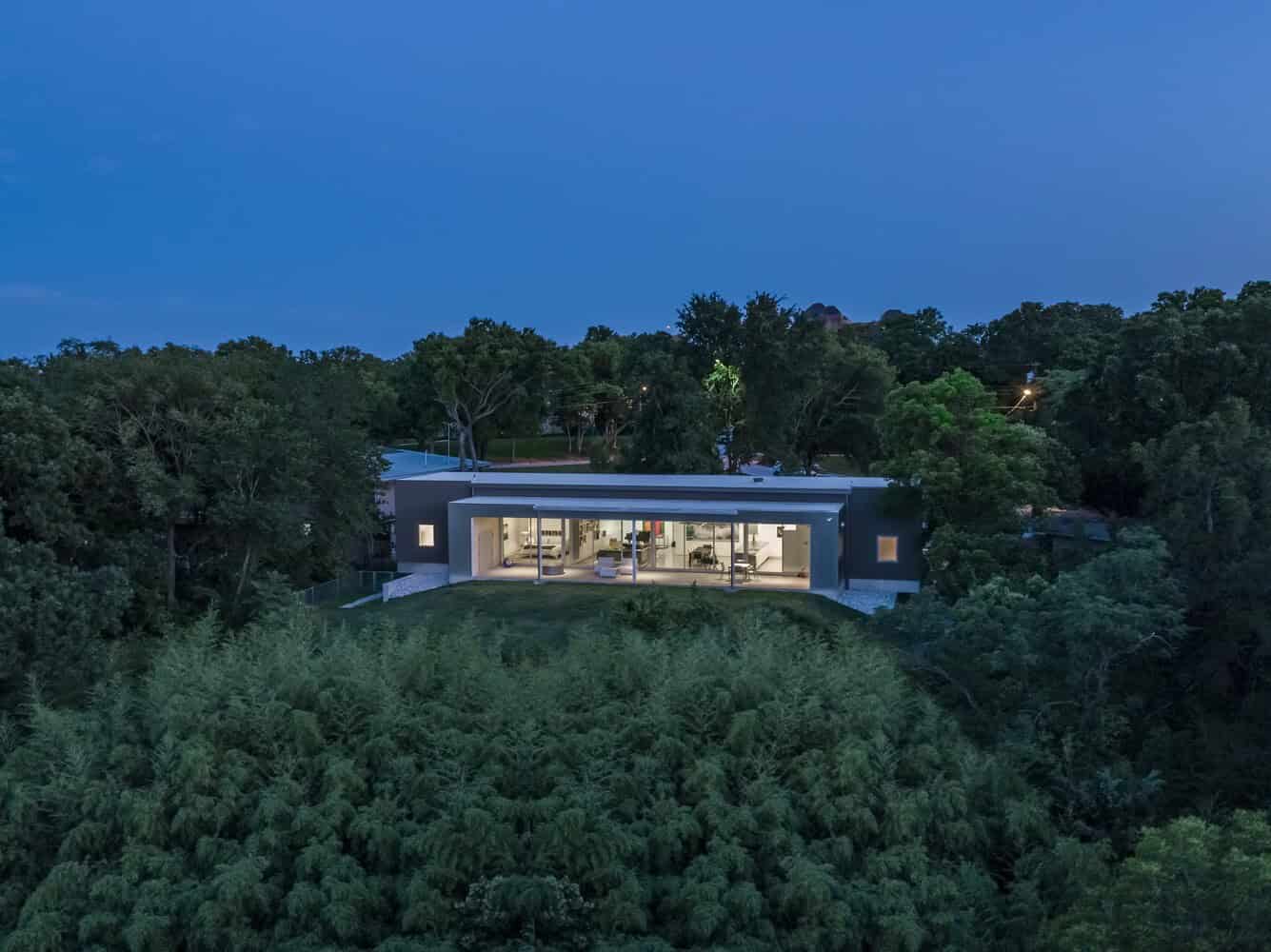 The Rio Vista Residence is a spectacular modern dwelling designed for a single family. It is located on a cliff overlooking the Trinity River and downtown Dallas. The site is among a dense forest that creates a privacy barrier for the house. With over 2,000 square feet, Buchanan Architecture did a great job designing this home so if you want to see more of their work, we’ve also showcased their Casa Linder project, also in Dallas, Texas.