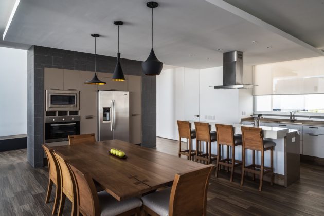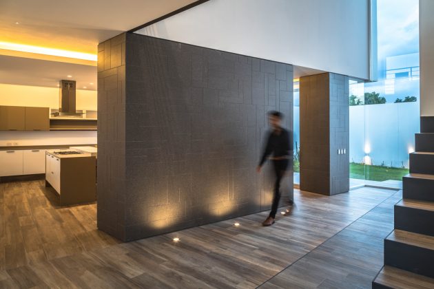 The R+P House is a stunning contemporary residence designed by the Mexico-based studio ADI Arquitectura y Diseño Interior. This two-story residence is located in the city of Aguascalientes in Mexico and it boasts 3,767 square feet of living space for its residents. It is designed for a 5-member family where 3 members are beloved pets.