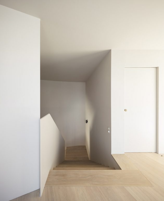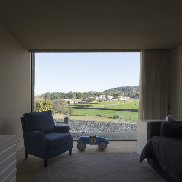NoArq’s strategy preserved the essence of the site while reinterpreting its material language. By retaining lower walls and slate slabs, the new residence creates dialogue between old foundations and contemporary living spaces. The new volumes do not impose an urban frontage but instead embrace the morphology of the land, nestling into the terrain and extending toward the farmland.