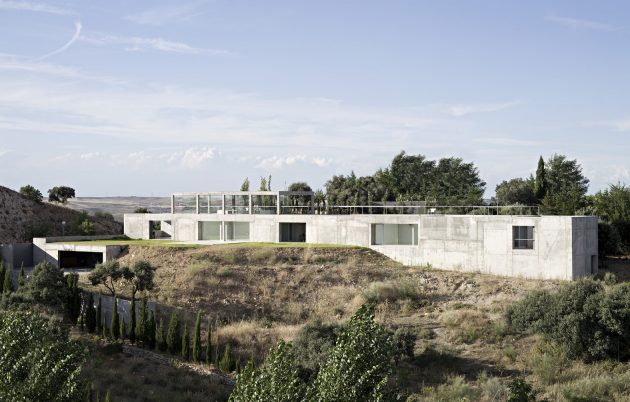From the architects: “The brief was to build a house on a hilltop outside of the city of Toledo. The hill faces southwest and offers interesting views of the distant horizon, reaching the Gredos Mountains to the northeast.