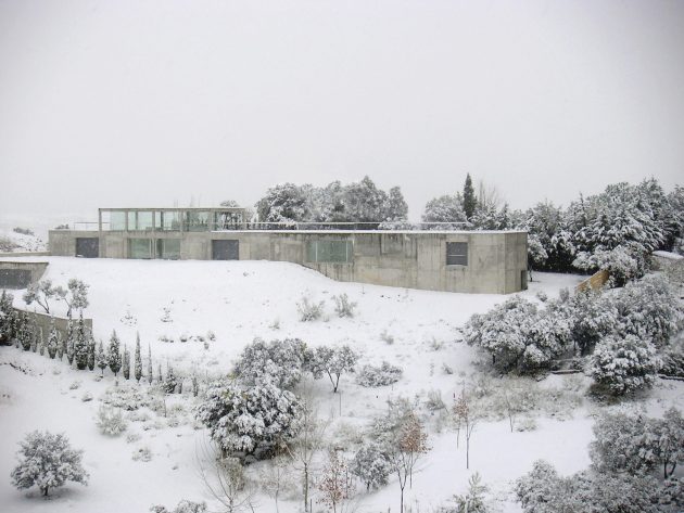 The Rufo House is a bulky concrete structure with views stretching out towards the Sierra de Gredos mountains. This contemporary two-story residence by Alberto Campo Baeza is much more than just a bulky concrete structure though.