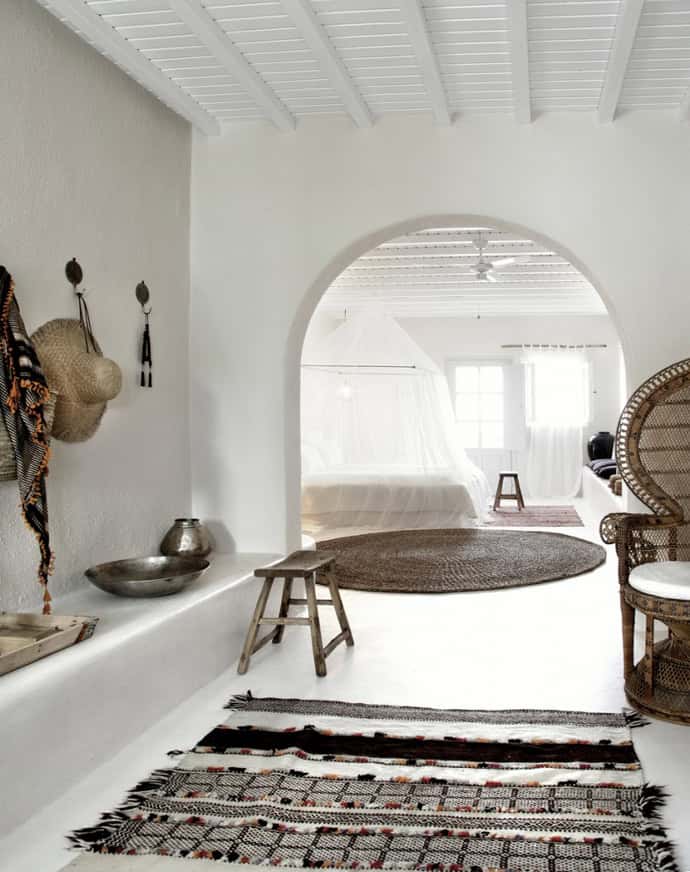 Each of the 34 rooms, including two spacious suites, showcases a curated selection of handcrafted furniture and natural textures. From whitewashed walls to locally sourced decor, every detail tells a story. The aesthetic leans into bohemian refinement, combining Arcadian treasures, earthy tones, and artisanal craftsmanship to create a deeply personal atmosphere.