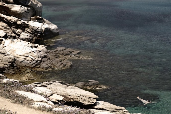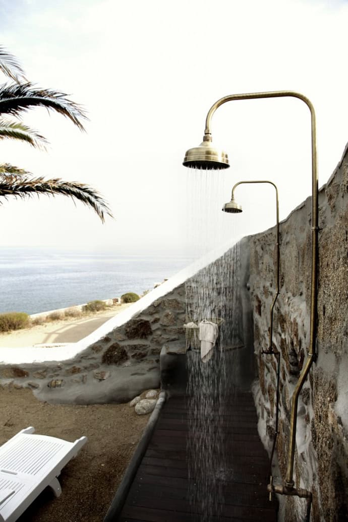 The hotel’s layout echoes the timeless Mykonian architectural style—a collection of minimal, geometric white buildings arranged around sun-drenched courtyards. The open-plan design allows for flowing sea breezes, ample Aegean light, and seamless transitions between indoor and outdoor living.