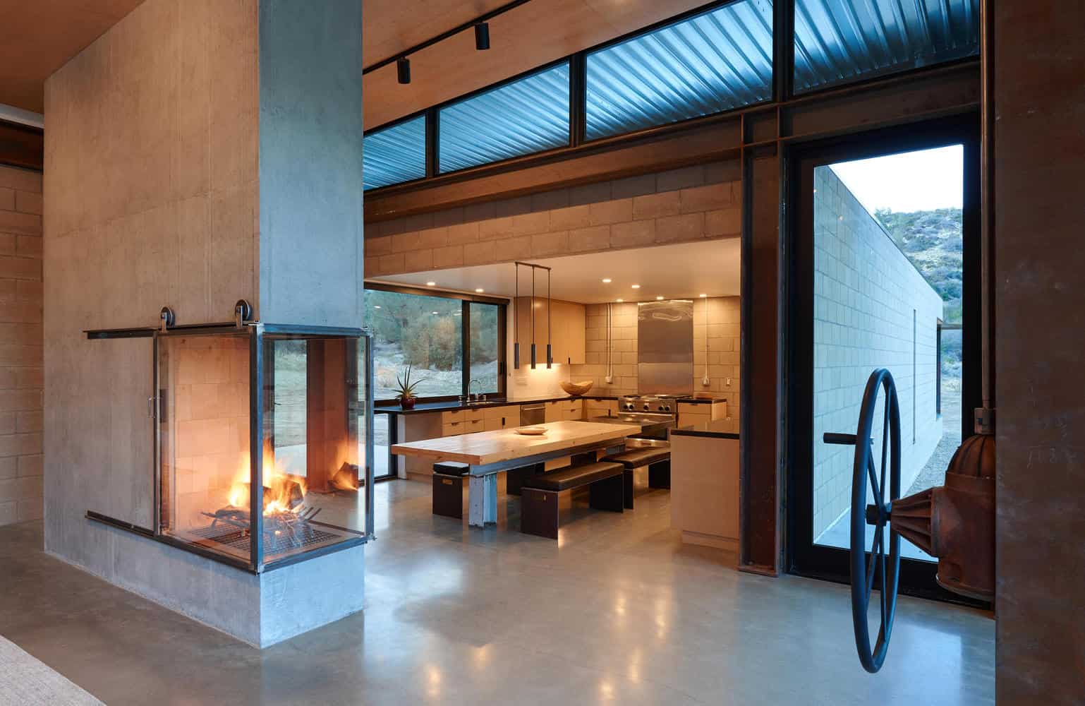 This hearth-centered plan promotes connection between family members while emphasizing the building’s relationship with the rugged desert surroundings.