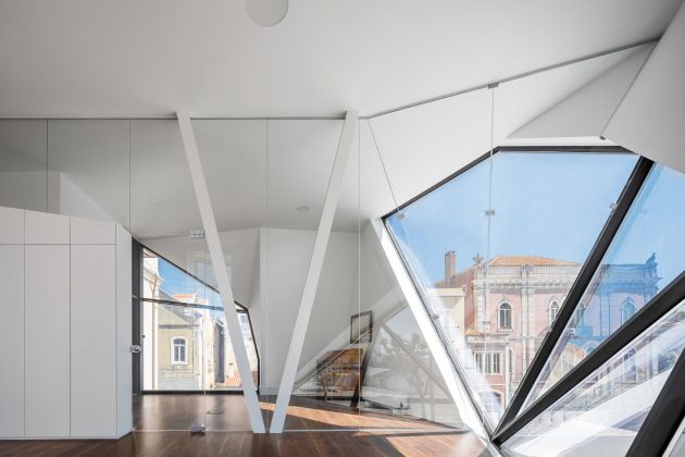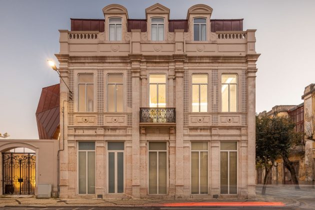 The new relationship between the building and the street was greatly benefited: there is no longer a disfigured gable and another prominent element was created, a new heart, which gives new life to the building that supports it.