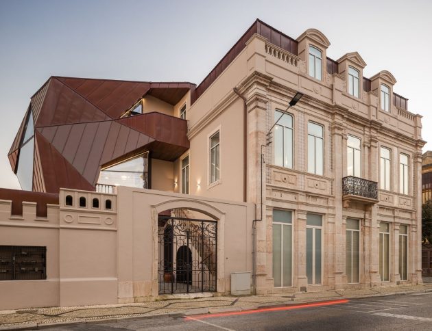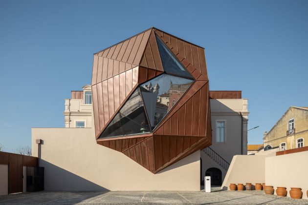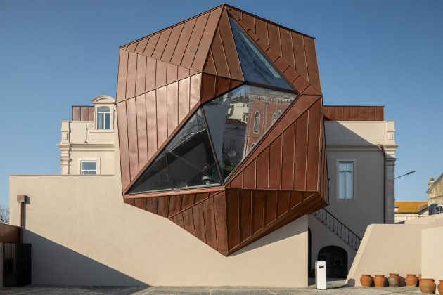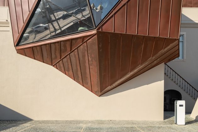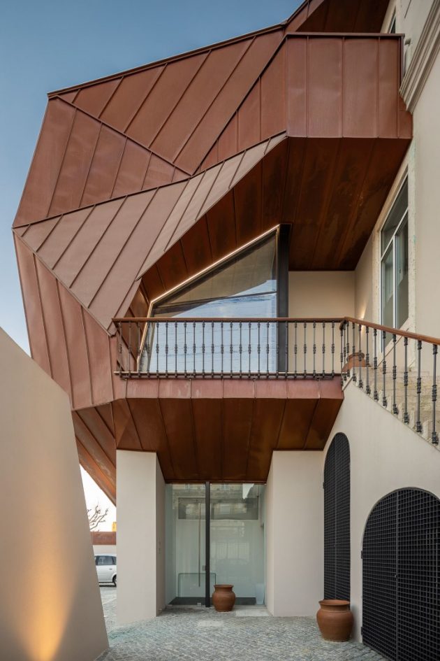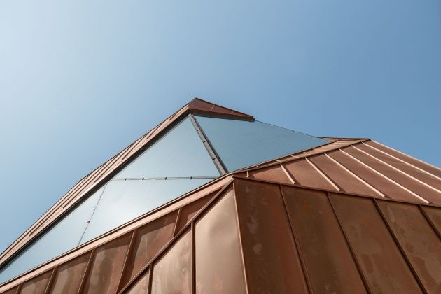 Copper stands as the link between the existing and the new, enveloping the entire building, sometimes adding a touch of contemporaneity with bold and angular shapes, others incorporating its essence, assuming itself as a whole, which extends, wraps and involves.