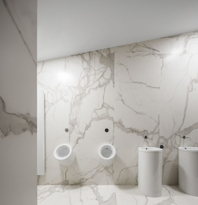 The building, which already had a close relationship with light, now gains a whole new luminosity, achieved not only by subtle features, but also with the imposing spans of the new intervention and the choice of materials and colors.