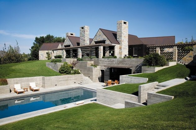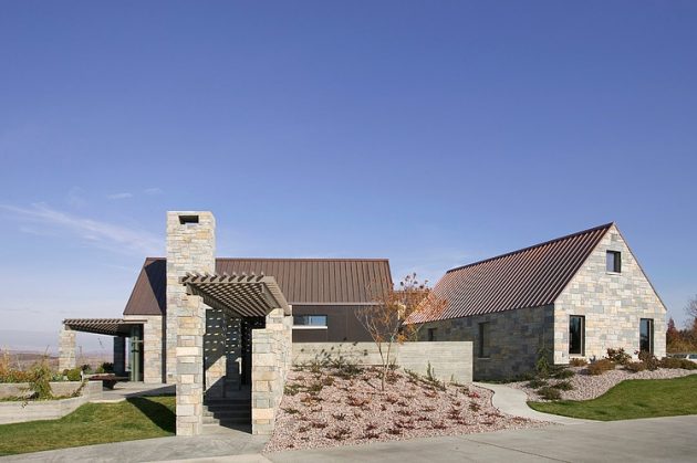 Stuart Silk Architects have designed the Selah Residence which is located on a plateau surrounded by rolling hills covered with apple and cherry orchards. The dramatic profile of the snowcapped Cascade Mountains is clearly visible in the distance which is a very feature of the home.