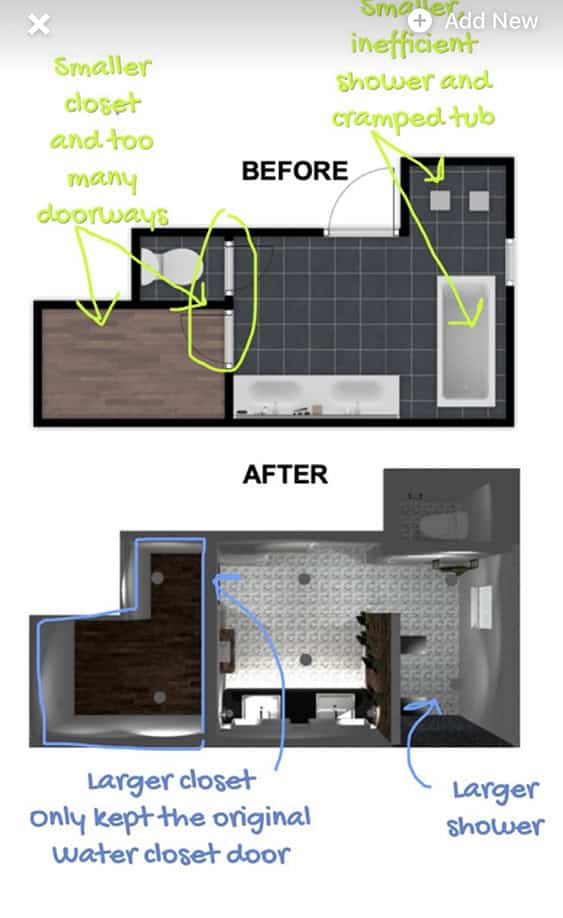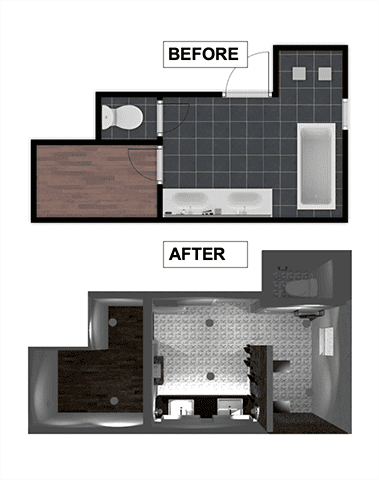 When remodeling your bathroom, consider layout changes to improve your space. Sometimes the optimal layout can be just a few rearrangements. Other times you might have to remove walls to make a big improvement in the space as with this recent bathroom remodel.