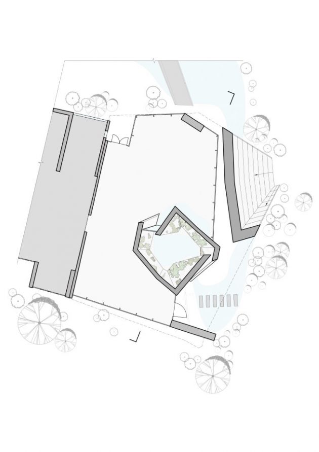 The site is an empty plot adjacent to a traditional 1950’s – 60’s style village house. It’s in a strategic location, close to the village’s central bridge, and the river has the potential to be a focal point both for the view and as the community spiritual centre. The site is an ideal spot for people to gather at the heart of the village and provides a beautiful view towards the river and the magnificent Qing Dynasty houses. Due to the small scale of the adjacent buildings, the new structure needs to harmonize with them in height and scale. The flower-like cone opening towards the sky is both a geometrical and pragmatic solution to support the proposed structure and bring “nature” into the building.