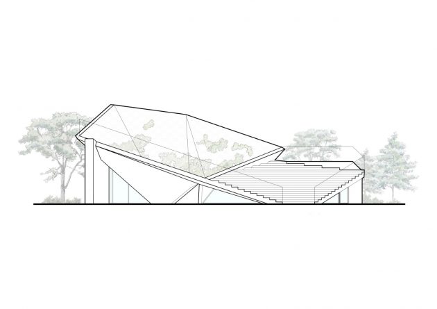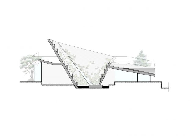The design employs easily accessed local materials and develops them into a particular architectural language, just as the original village buildings did for hundreds of years. The generic material ensures low construction and running costs; the heavy platform confers high sustainability on the indoor space. Plants in the cone constantly grow, adding a dimension of time to this man-made structure. It is a project that integrates completely with its surroundings, while inviting natural elements and people to celebrate its ambiguity and polysemy.