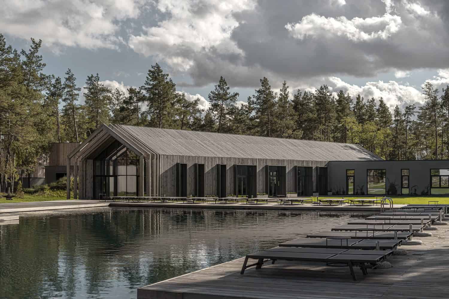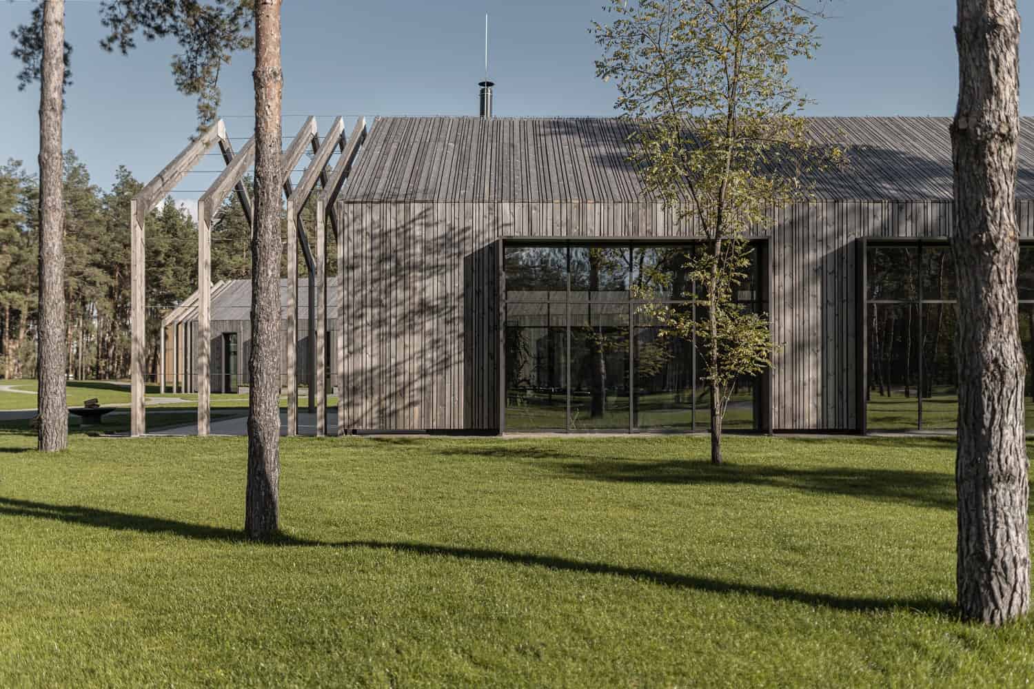 YoDezeen Studio has designed the Shelest Retreat in Khotyanivka, Ukraine. This project is placed at the edge of a dense pine forest on the shores of the Kyiv Sea and as such it has access to stunning natural sights. Of course, one of the main aspects of the design is the focus on the views to the outdoors.