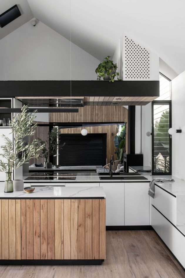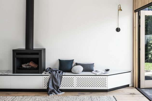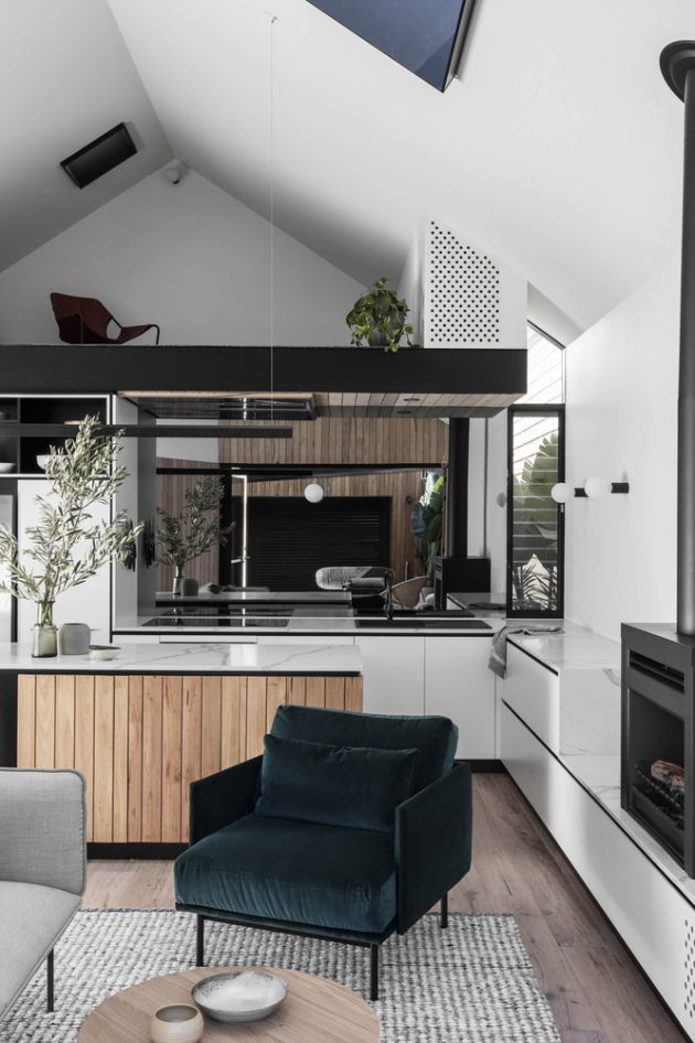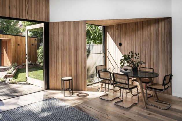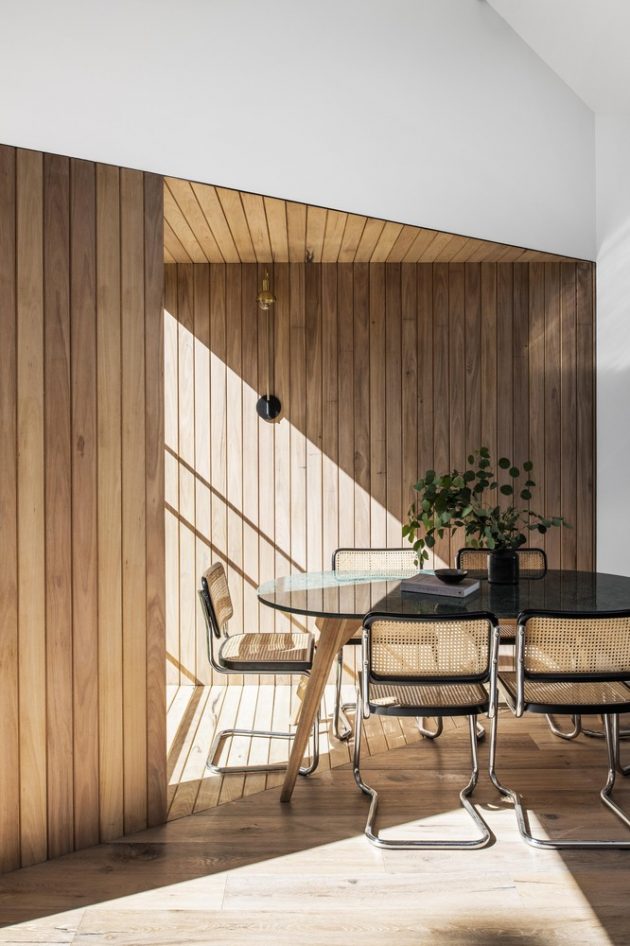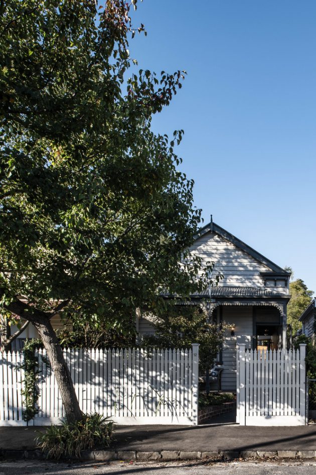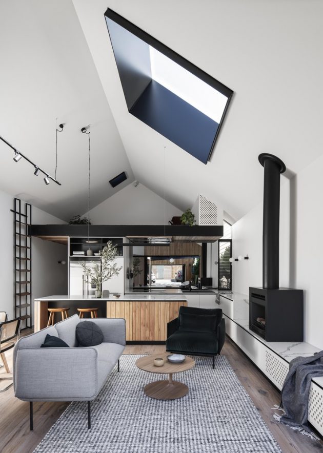 The Silhouette Hytte House is a beautiful modern extension of an existing home in the quiet streets of Elwood, Victoria in Australia. The completed design offers just under 1,200 square feet of modern living spaces to its inhabitants wrapped under a playful silhouette. It was designed by FIGR Architecture & Designwhose work you might recognize from our recent showcases of their Courtyard House project in Templestowe as well as their Datum House project in Ascot  Vale.
