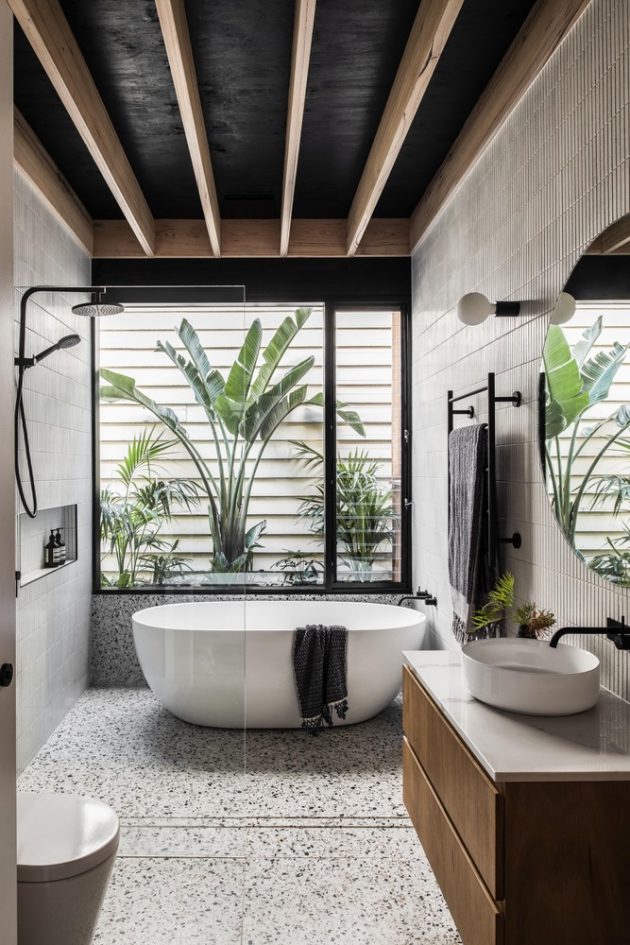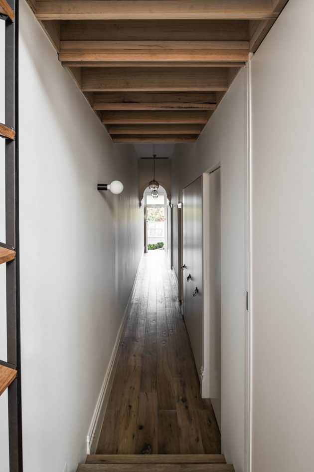 Nestled in the quiet streets of Elwood, Victoria Australia, ‘Silhouette Hytte’ House is located on a narrow 210m2 block. The site is 34.4m long by 6.1m wide and has an East facing backyard. Presented with a number of challenging constraints such as a heritage overlay, flood overlay and close proximity of neighboring trees, the project required a carefully considered design response to achieve the clients ambitious brief.
