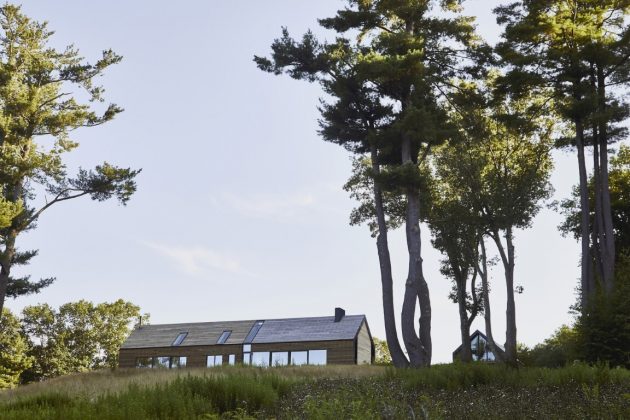 The first ground-up residential project completed by emerging New York City-based Amalgam Studio. Conceived as a modern barn, the 5,000 sq ft (465 sqm), four-bedroom family residence of stone and wood, sits atop a hillside on a rural, 120-acre property located near the town of Rhinebeck, epicenter of the Hudson Valley’s culinary and artistic renaissance.