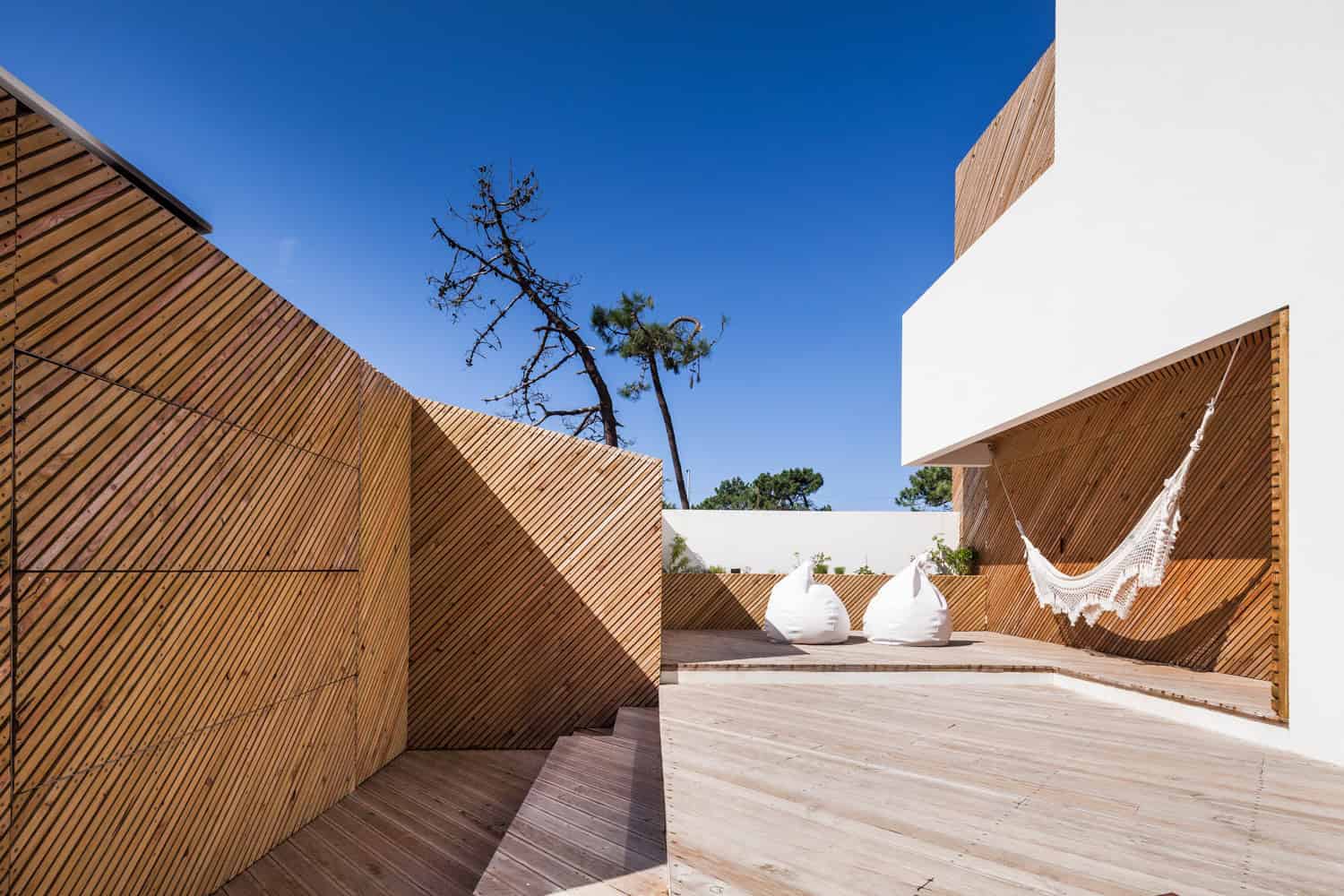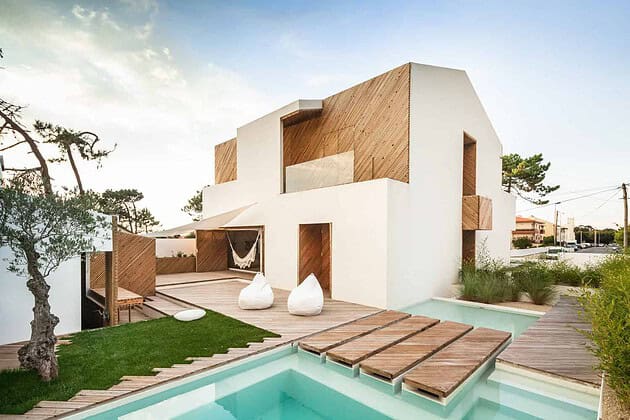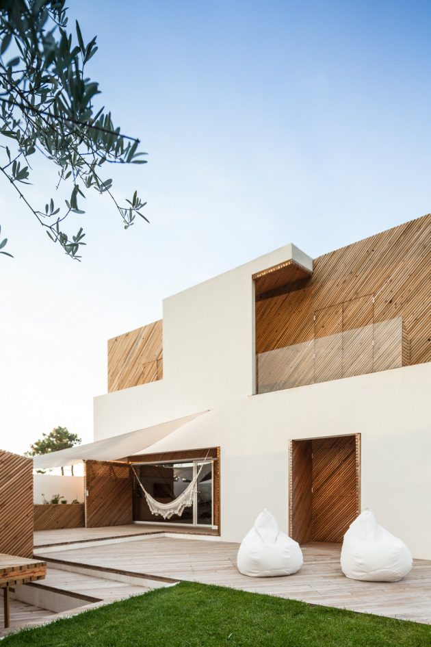 With no specific budget or deadline, architect Ernesto Pereira‘s only brief was to transform an existing residence into a fascinating home for the clients. In the end, the remodeled residence in Mindelo, Portugal featured diagonal slats of timber set into the facade. This home is now also known as SilverWoodHouse and is located in a coastal area just 14 miles north of Porto.
