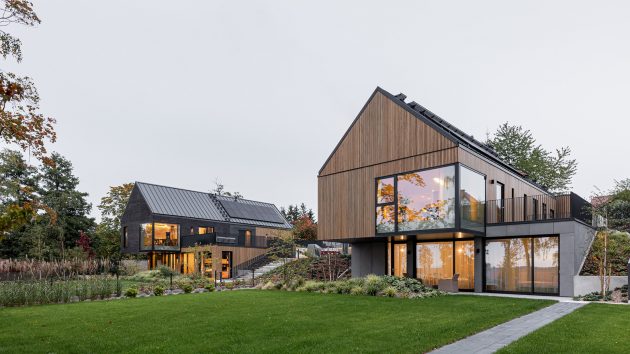 MAKA.STUDIO has completed the Single Houses in Bory Tucholskie project. It is a modern complex of two single-family residence in Poland located on a lakeshore plot. Both of these homes feature a modern design focused on natural light, minimalism and views of the landscapes around them.
