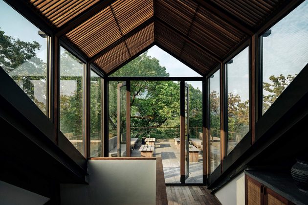 Wang Chi, the lead architect in this project, leans more towards expressing the modernity by a repetitive accentuation on the ‘Present’, the ‘Now-ness’. Ostensibly her view is wrestling with Xie’s, but granted, the emphasis on the ‘Present’ is a shared view of them both. Sisan characterises brick masonry and wood-framed structure though; at first sight, you may have mistaken it for an ancient villa on a weekly basis of maintenance because the structural steels and the glass are clearly distinctive indications to lay bare all the modern elements.
