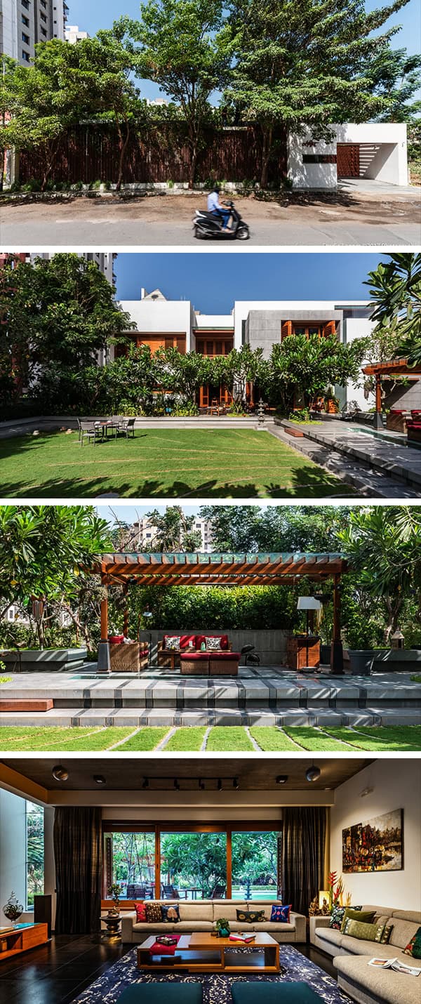 The Skewed House by Studio Lagom is a contemporary residence located in Surat, India. This 11,000 square feet dwelling boasts a design that makes use of simple aesthetics presented through a minimal material palette. The Skewed House seeks to create a connection to nature, an oasis of serenity in a typical urban location. The idea of the architects was to reverse the structure, but let’s see what they actually had in mind.