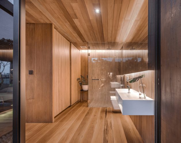 When construction began, the owner already owned a supply of Balau hardwood planks.