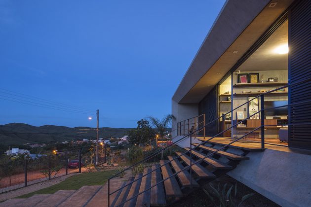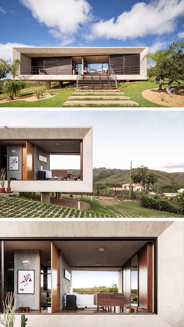 3.4 Arquitetura have completed the design of Solar da Serra House located on a sloped plot of land in Brasilia, Brazil. Its cuboid design creates a single story with just over 1,000 square feet of living spaces but all of which have direct access to stunning views and plenty of natural lighting.