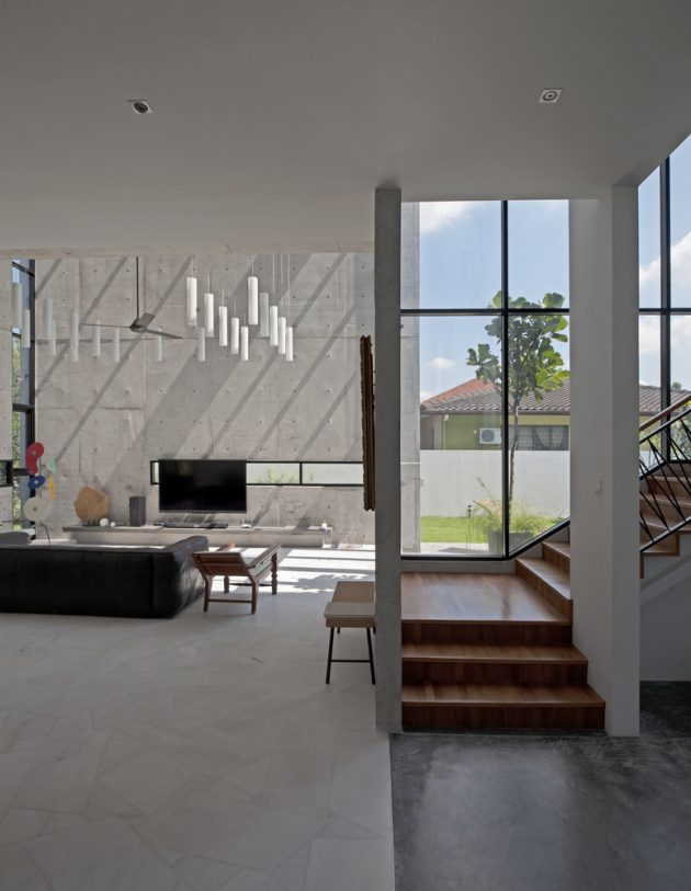 The SS3 House is situated in the residential suburbs of Petaling Jaya, Kuala Lumpur. It is a 4,600 sq ft bungalow that was built from scratch, possessing 30-feet tall windows that generously brighten and amplify its voluminous interiors, thus maximizing space quality.