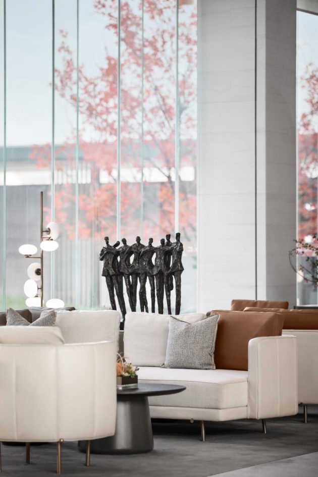 Not limited to concretely expressing “starlight”, Mind Design echoed the theme with the help of the “starlight” of the art installation and nonopaque stone with spots. From the lobby, the space is constantly changing, the starry sky is constantly expanding, and the value of life is constantly iterating.