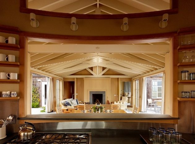 It is designed with an H shaped floor plan where the living room is at the core of the home. The wings that surround it open up to stunning views of the Pacific Ocean and the landscape around the home.