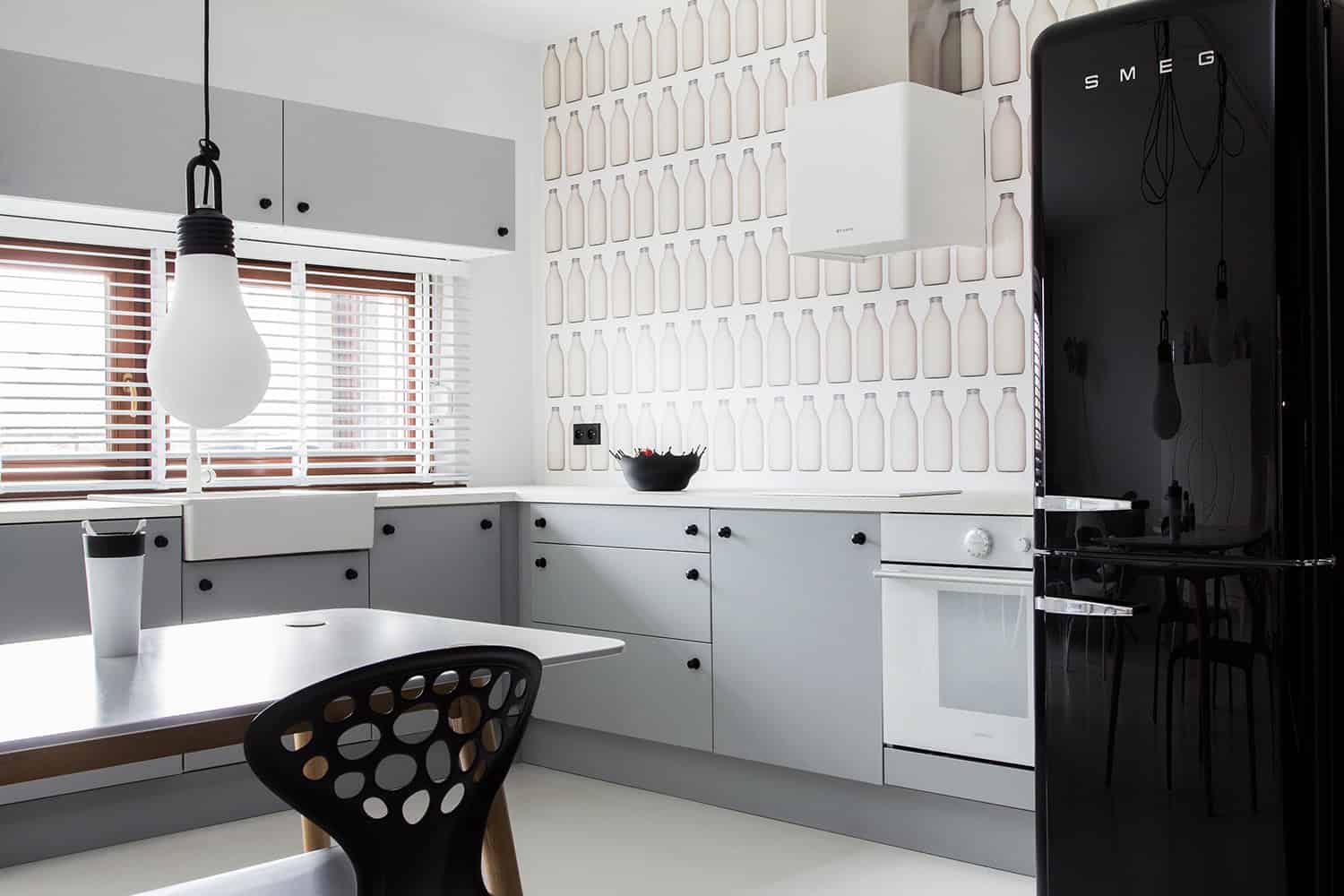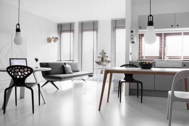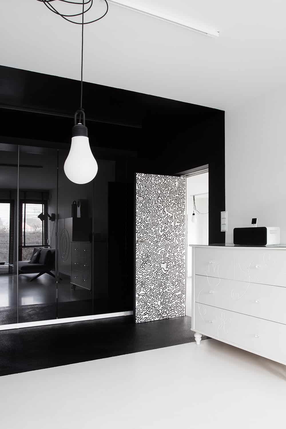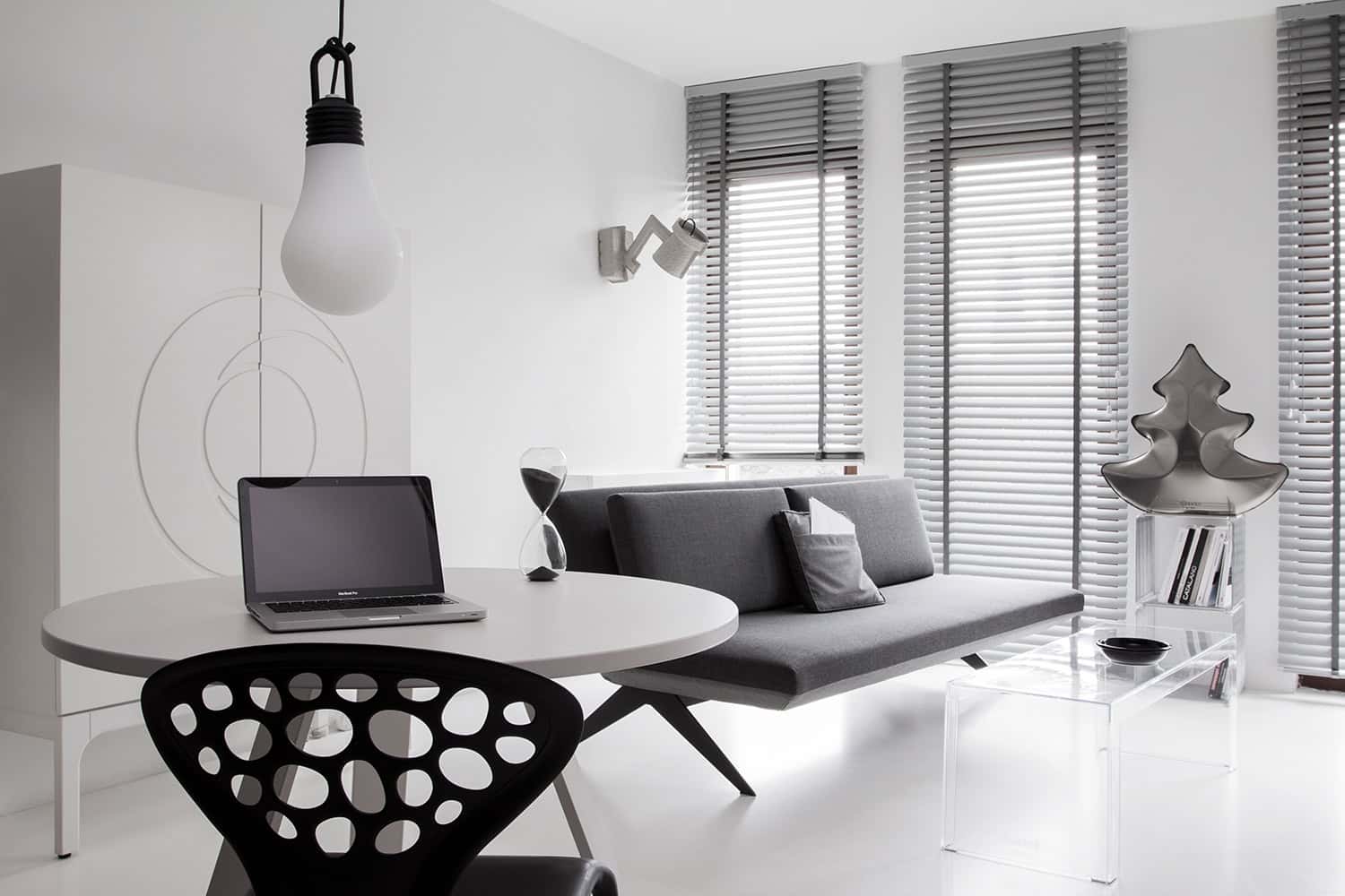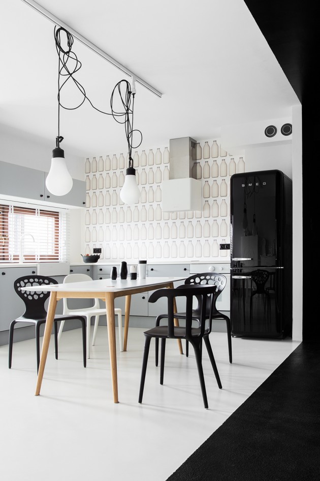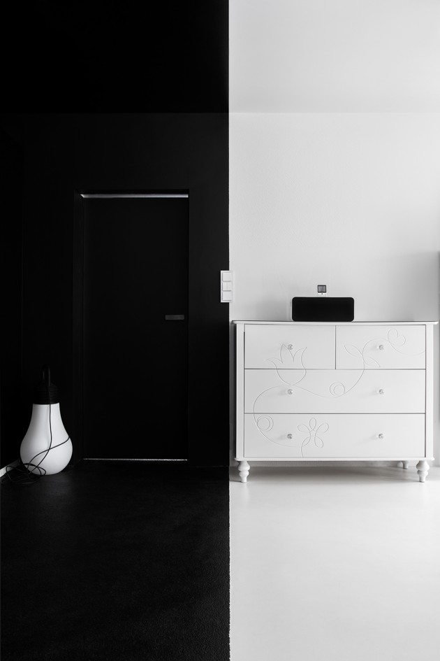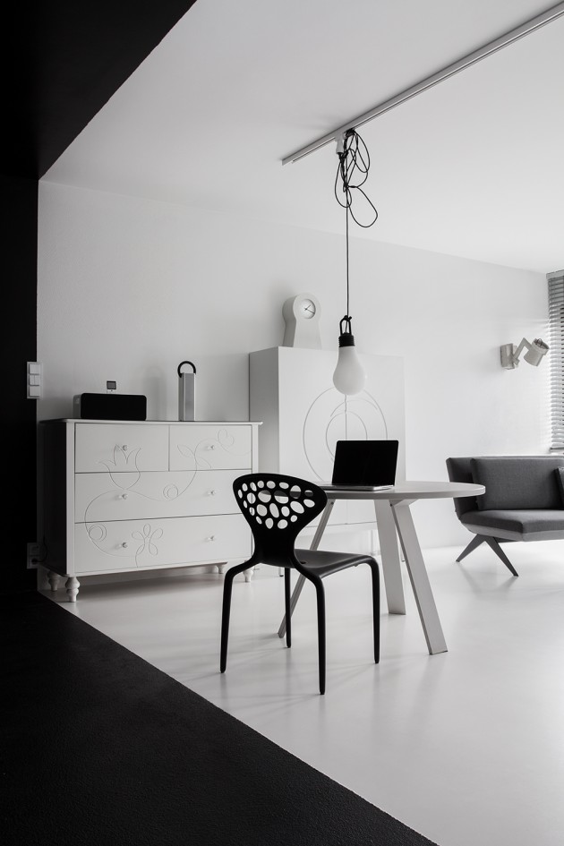 KASIA ORWAT Home DesignBlack and white – two distant poles, two extreme opposites. As the two zones in which this studio in Poznan is organized – black and white. The coherence of this project seems to deny the contrast it is based on. But this is not only an aesthetic procedure, the strong distinction is primarily due to the carefully thought space functionality.