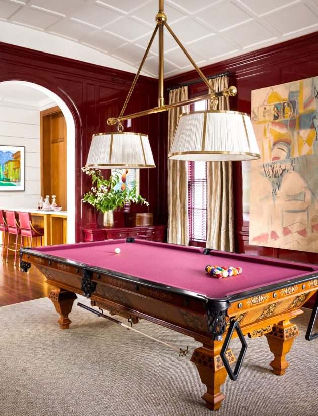 The stunning home that you are about to witness is so astonishing that we ran out of words. It’s located in New Jersey’s horse country on open incredible land. The house looks like it’s been there for almost a thousand years and yet is filled with all the modern amenities. This European-style house has been designed with such interiors that are elegant without ostentation. You can find fine large contemporary art that eches classical themes, piles of fabrics, and rugs that are suit the atmosphere, also layers of Venetian plaster and hand-applied gold foil in the living room, followed by a hand-sanding so that the gold would properly melt into the plaster.