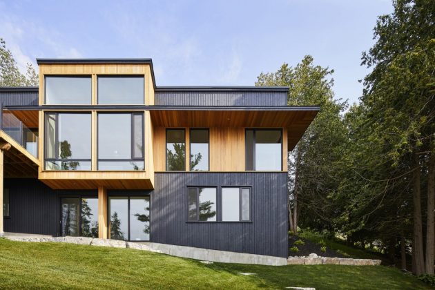 Stephane LeBlanc Architects has designed the Sturgeon Lake House on the southern shore of Sturgeon Lake in Ontario, Canada. This is a luxurious modern dwelling designed for an active family with two young sons who were looking to get away from the busy city life of Toronto.