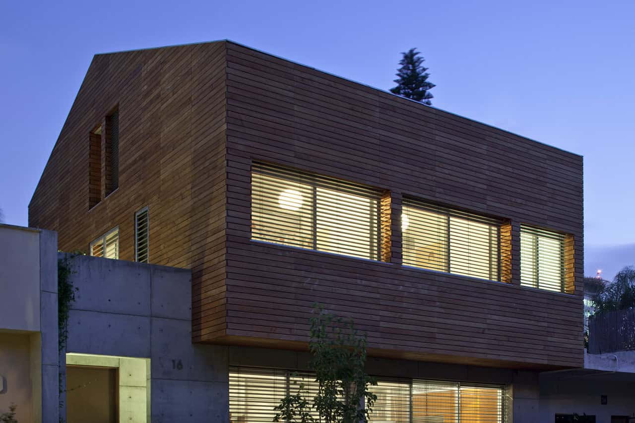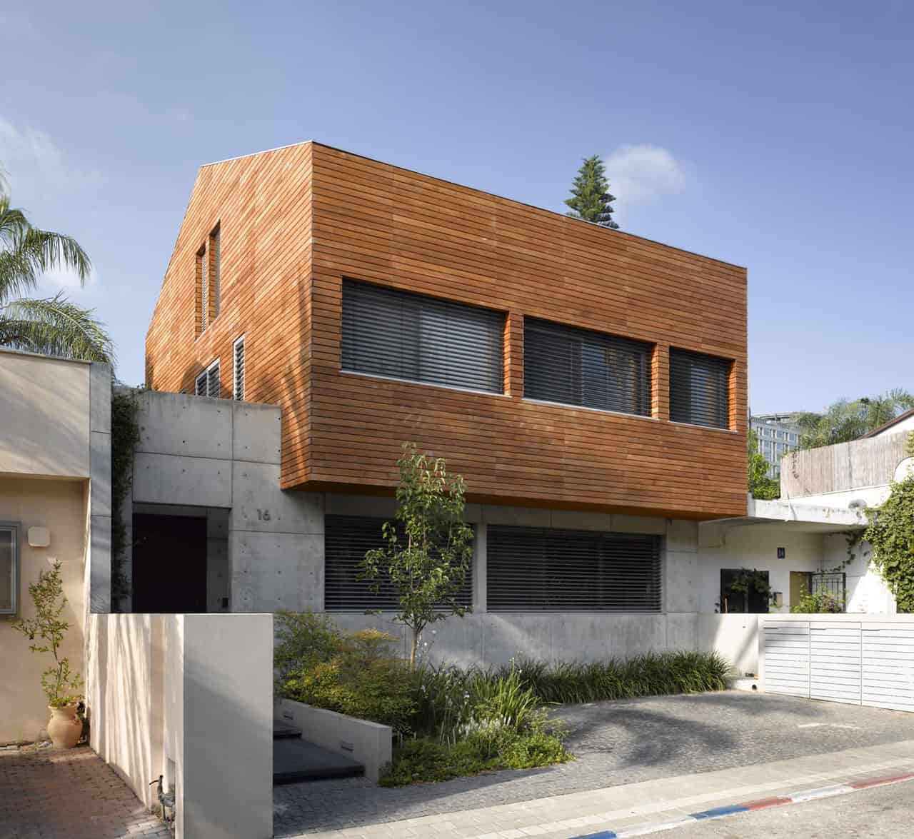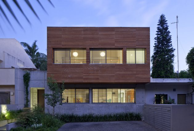 The STV House is a row-house in a dense part Tel Aviv where plot proportions and strict restrictions on neighborhood planning are present. This dictated the design and defined the positioning and proportions of the house which resembles a concrete box clad in wood, but more on that from the architects.