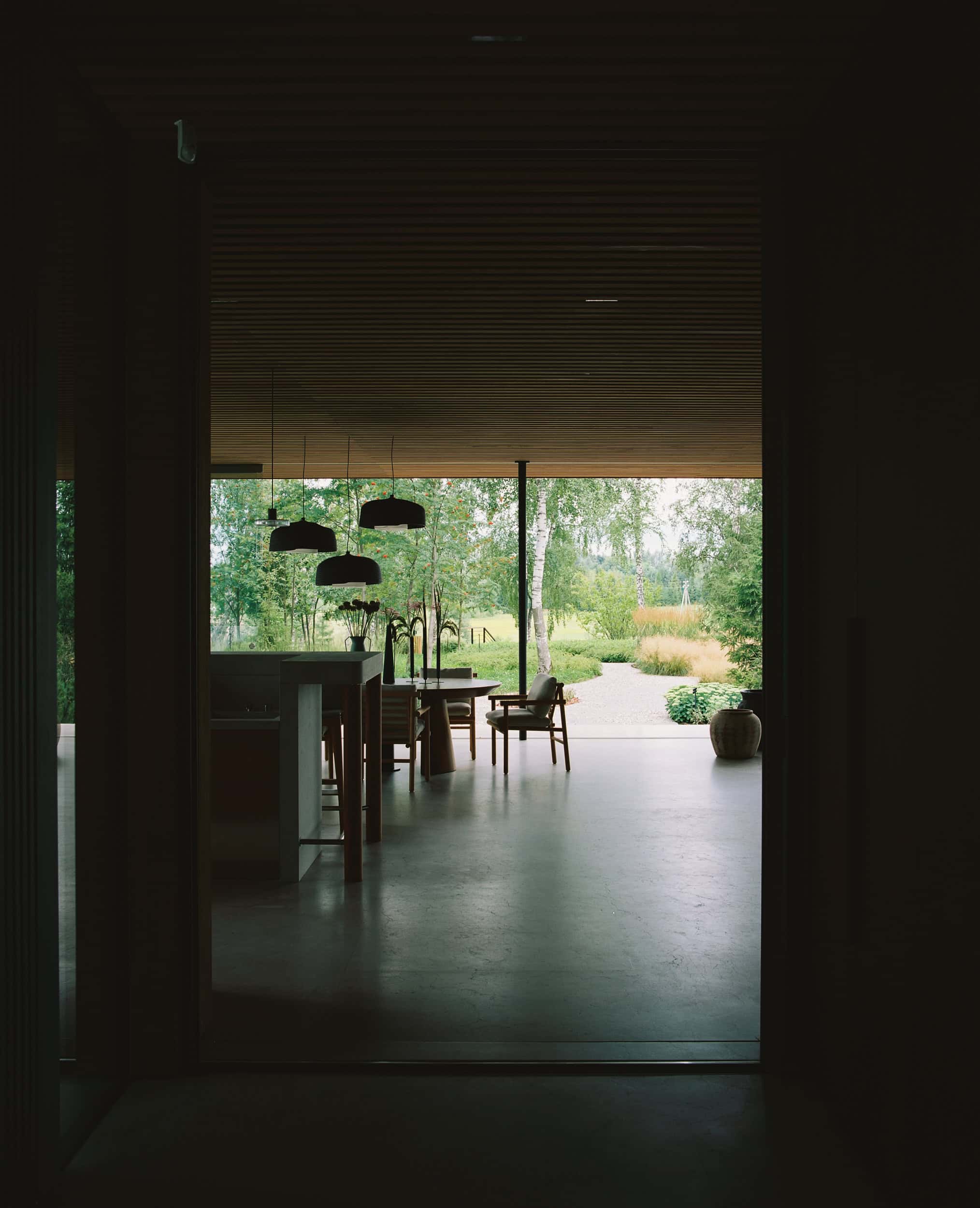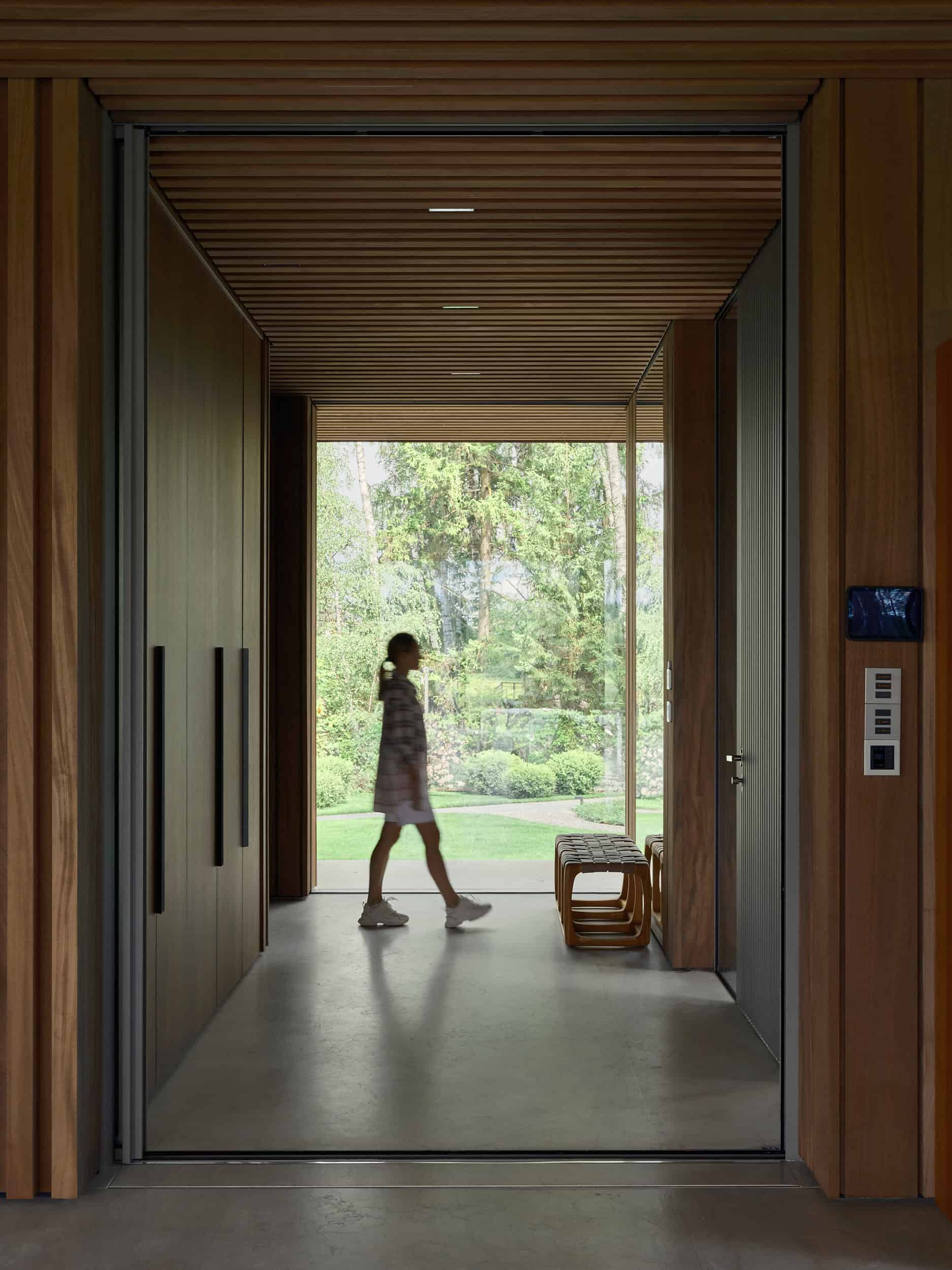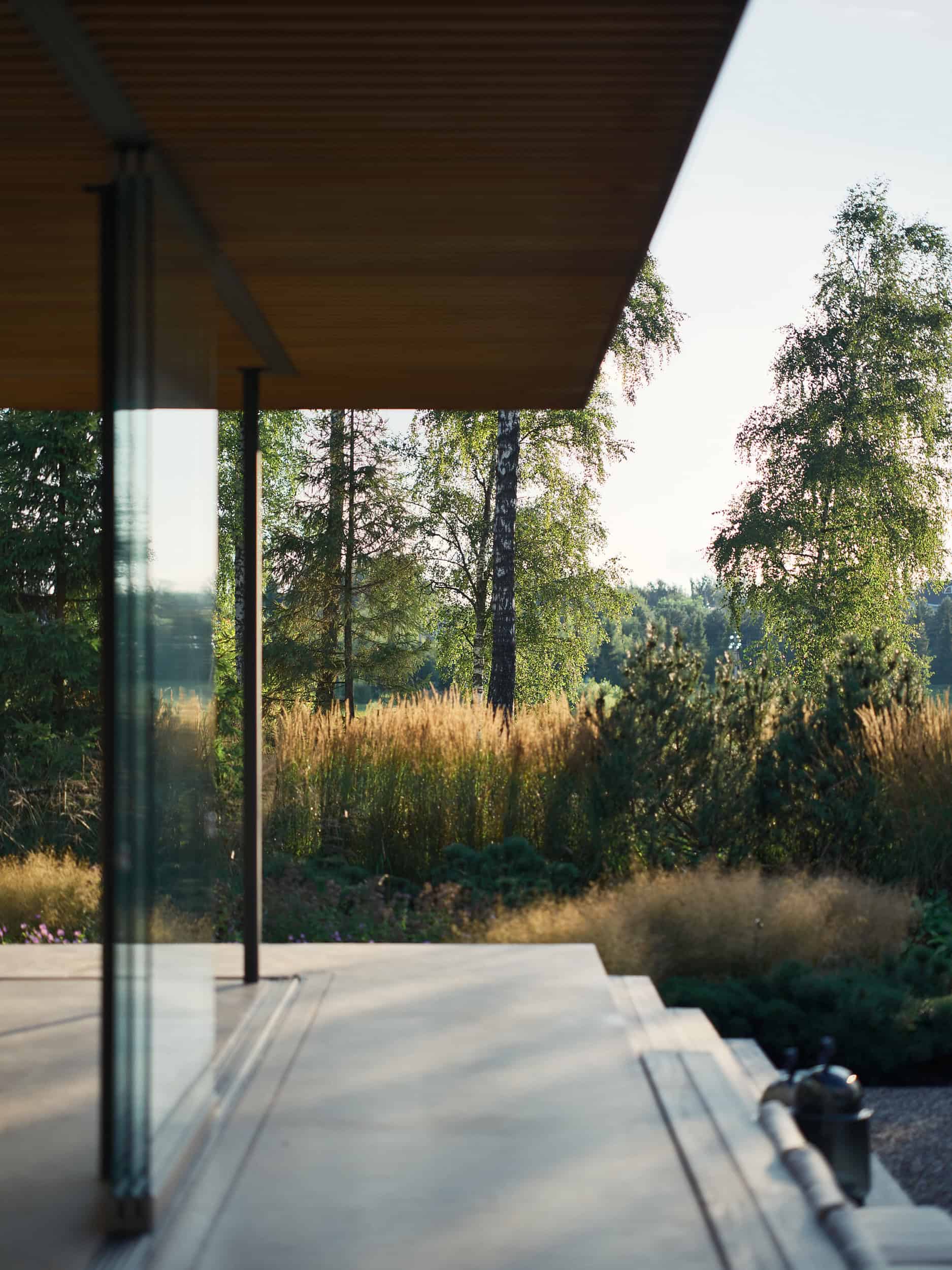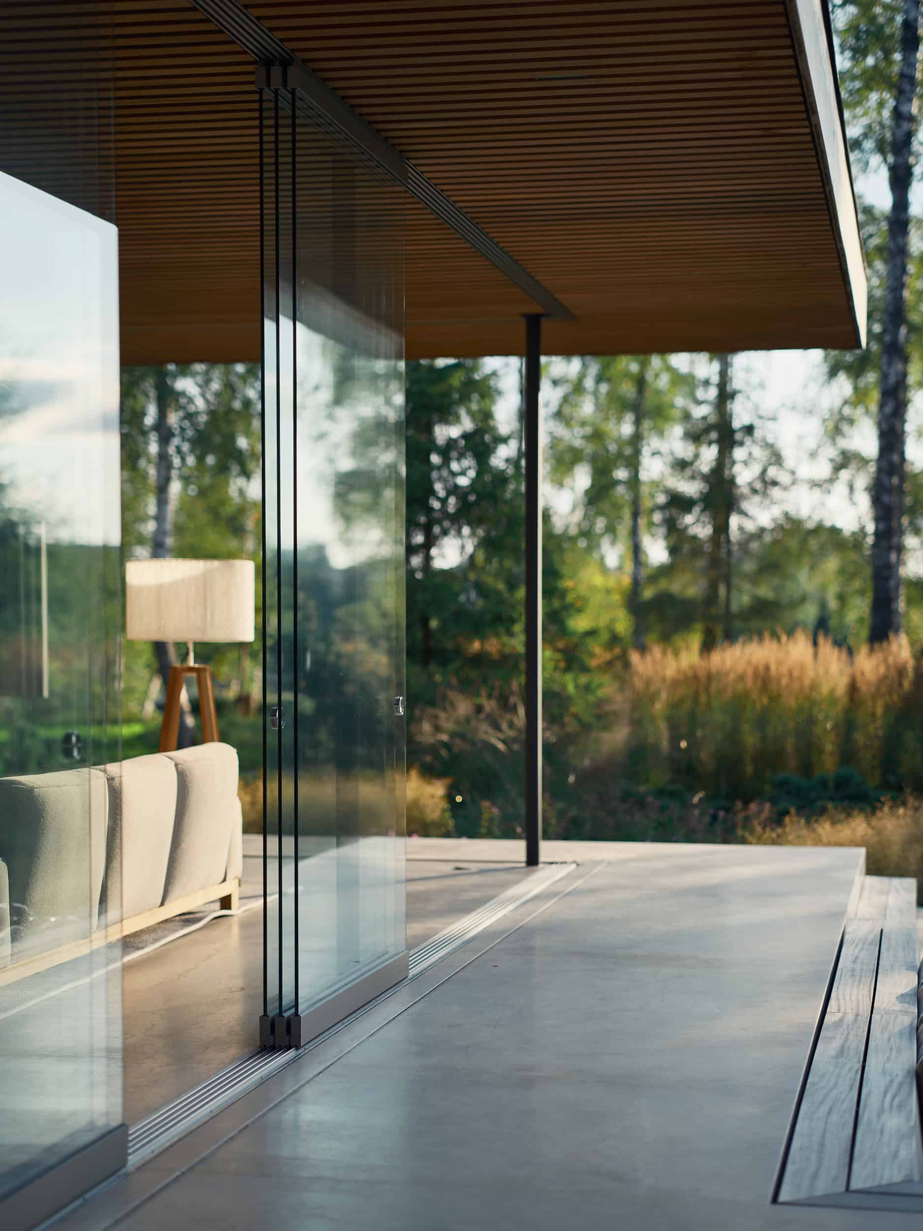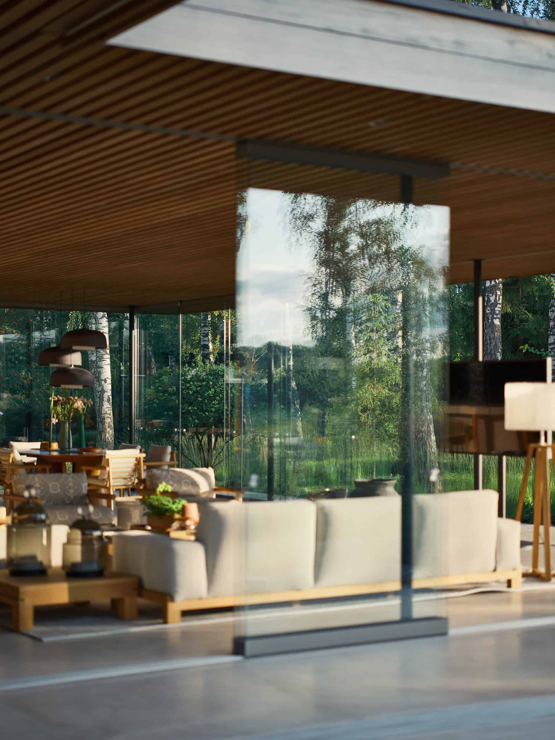 • In summer, the glass walls can be opened entirely, allowing fresh air and natural sounds to flow through the space.
