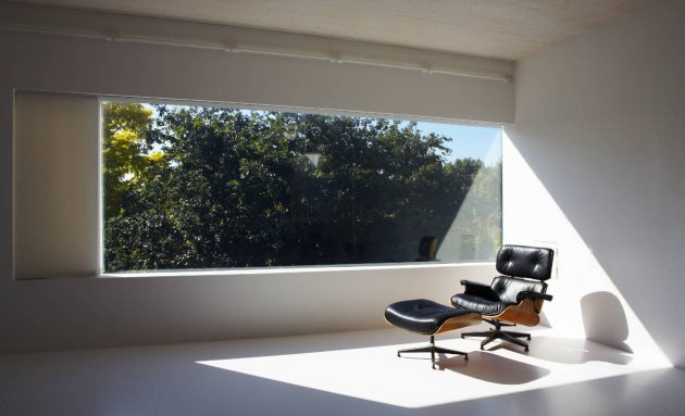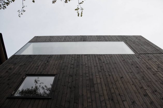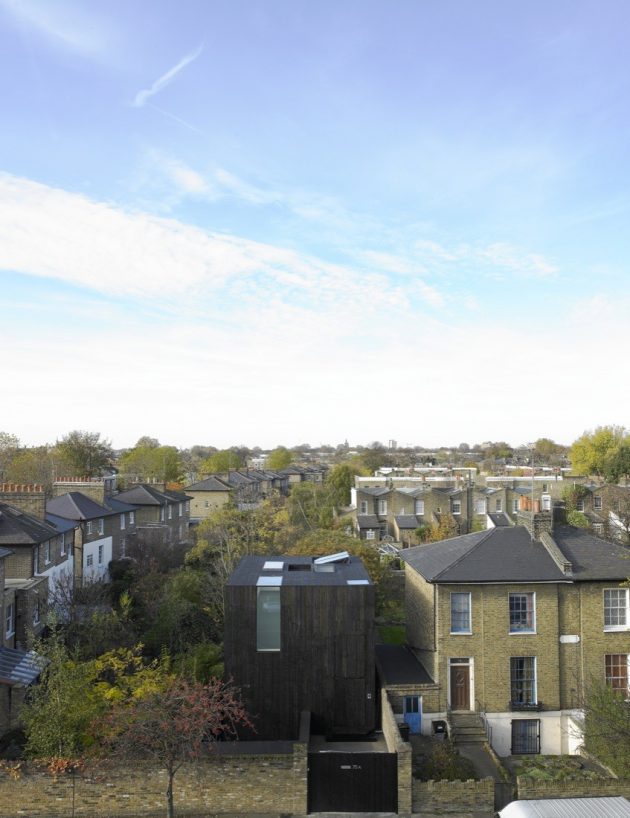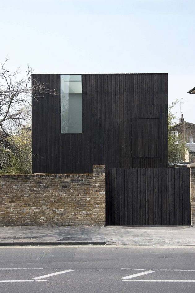 From the architects: “The form of this house combines certain attributes of its immediate neighbours. The De Beauvoir Estate is an area of semi-detached villas which have elegant proportions and shallow, hipped roofs. Unusually, for an area of this kind, a number of later workshop buildings have been added to the Victorian fabric and one of these is directly opposite the site. When seen from the street, the Sunken House appears to have the habitable volume of one of the two dwellings which make one of the semi-detached villas and, as such, represents the underlying unit of the Victorian development. But the flat roof matches that of the workshop building across the road and the language of the external openings (fixed glazing and solid doors and ventilation panels) has more to do with buildings of this type, rather than conventional houses.”
