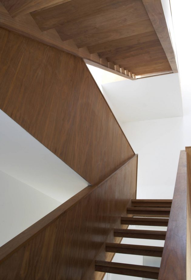 The Sunken House is a modern residence designed by the London based firm – Adjaye Associates. This minimalist residence is located in the Hackney section of London and shows Adjaye’s strong sense of materiality and light. The site has been excavated to basement level, creating a sunken patio on which the house – a partly prefabricated solid timber structure – is placed.