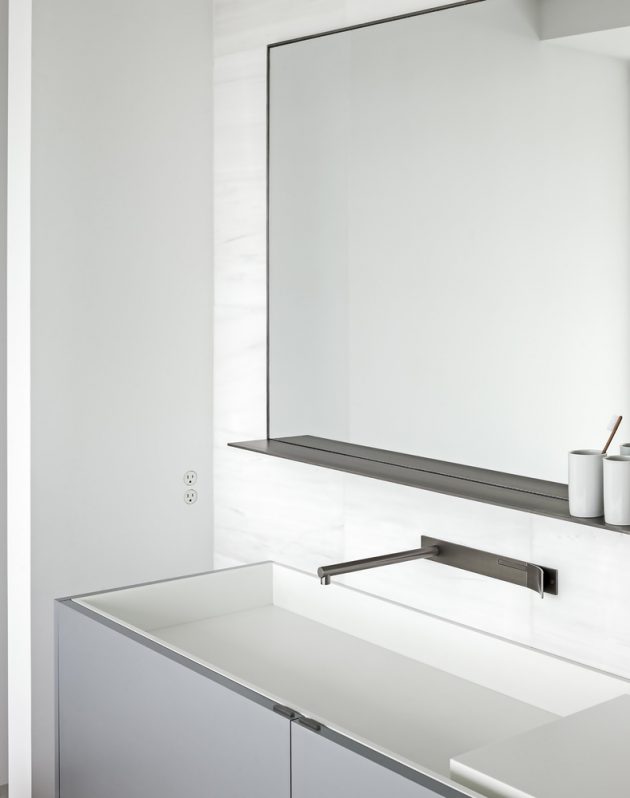 They offer a serene exhilaration which serves to foster an awe inspiring vista through the frame-less floor to ceiling windows. White washed, oak wood floors combined with white stone are an unabashedly modern touch, but not harsh to the senses.