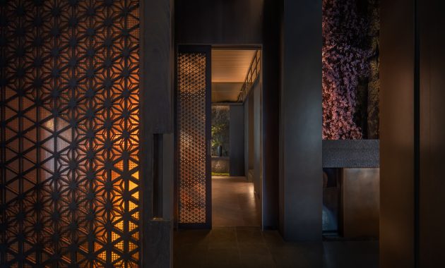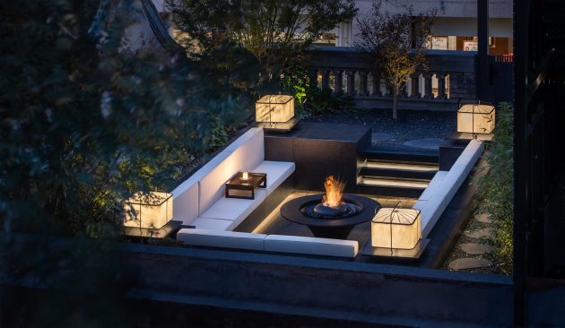 True to Beijing’s historic typologies, Sushi Zen includes a secluded courtyard, a tranquil microcosm of trees, water, stone, and light. Guests can wander wooden walkways toward sunken courtyards surrounded by maple and bamboo, pausing at flagstone paths or enjoying a fire-lit drink under the open sky.