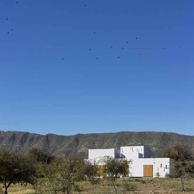 From the architects: “The desert house on the edge of the Great Karoo in South Africa meets the mountain and sky with an uneven profile that suggests its inherent flexibility. Internal spaces are differentiated by views and volume and allow heat to dissipate and wind to cool the house.