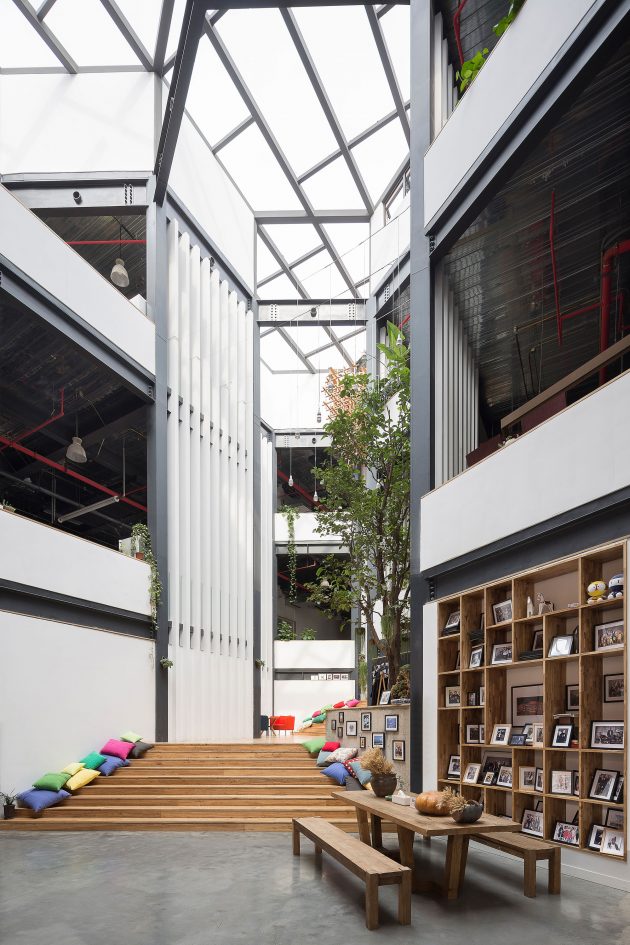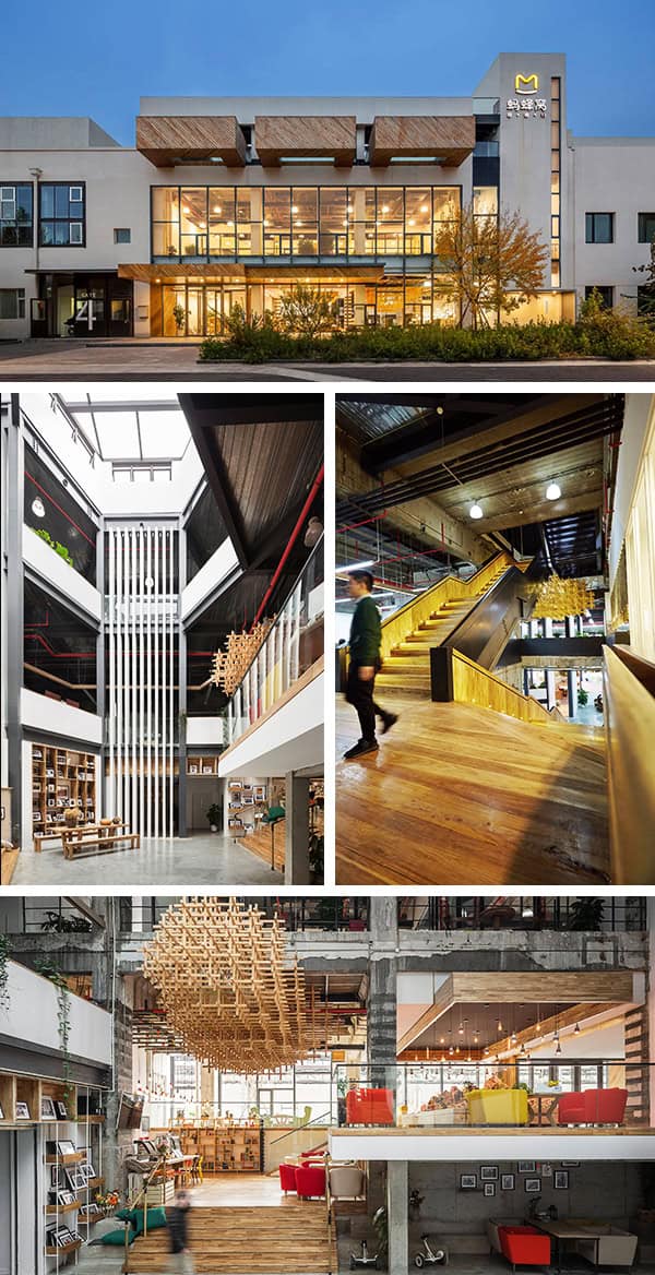 SYN Architects, a Chinese studio, has submitted one of their latest projects to us and has caught our attention with their transformation of a 1980s kinescopes factory into a modern office building that has become the headquarters for Mafengwo, a Chinese brand name of a tourism website.