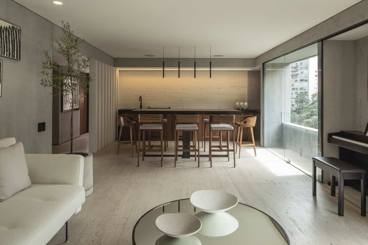 A space was created where music plays an important part, the lighting enhances the qualities of the design producing pleasant atmospheres, and furnishings were chosen seeking quality and style consistent with the apartment’s different spaces.