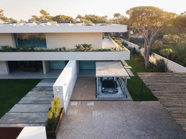 The disappearing car lift for a modern villa surrounded by nature in Portugal