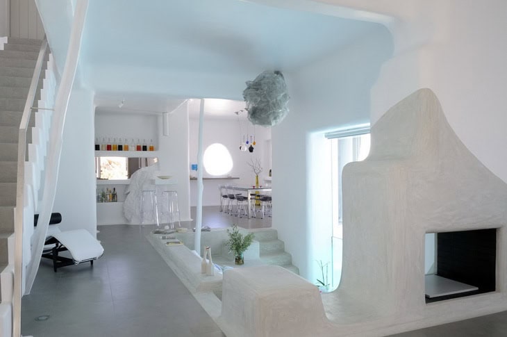 The sleek curves and holes, the white Cycladic that eliminates the sturdy light-weight and color harmonies, is what characterizes the world “breathe” the breeze coming back through the openings. The middle of gravity of the house looks to be the steps stands sort of sculpture. Patiti, grey concrete into alternating with marble application and collection within the space around the pool, sand-colored, lined the floors.