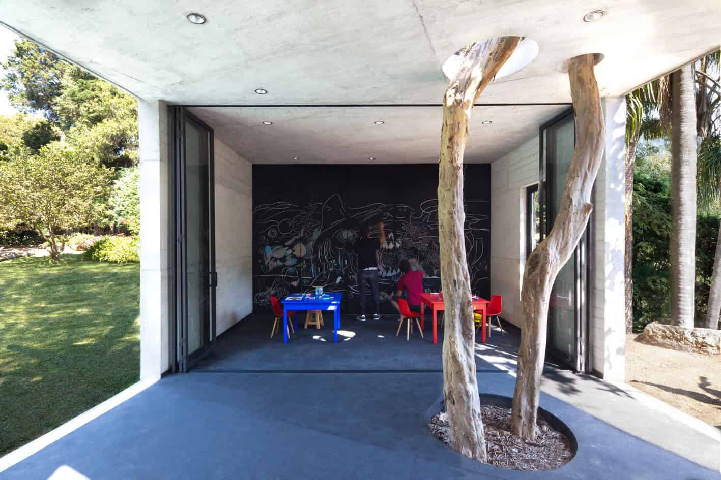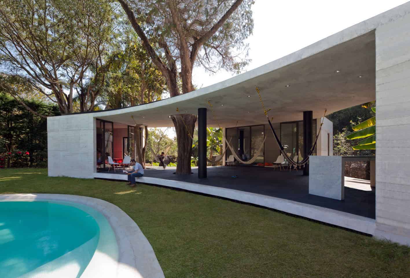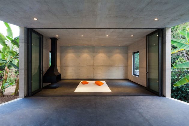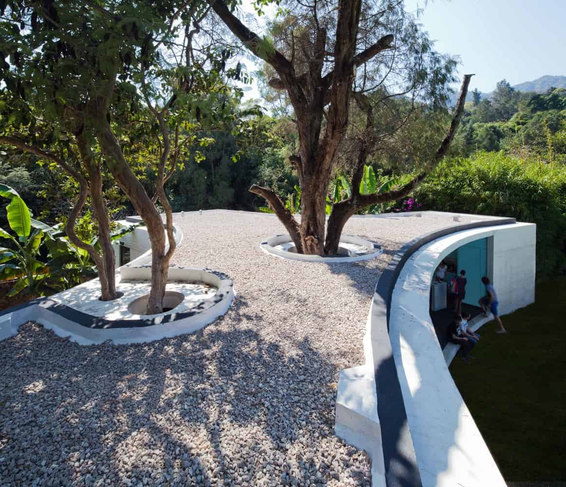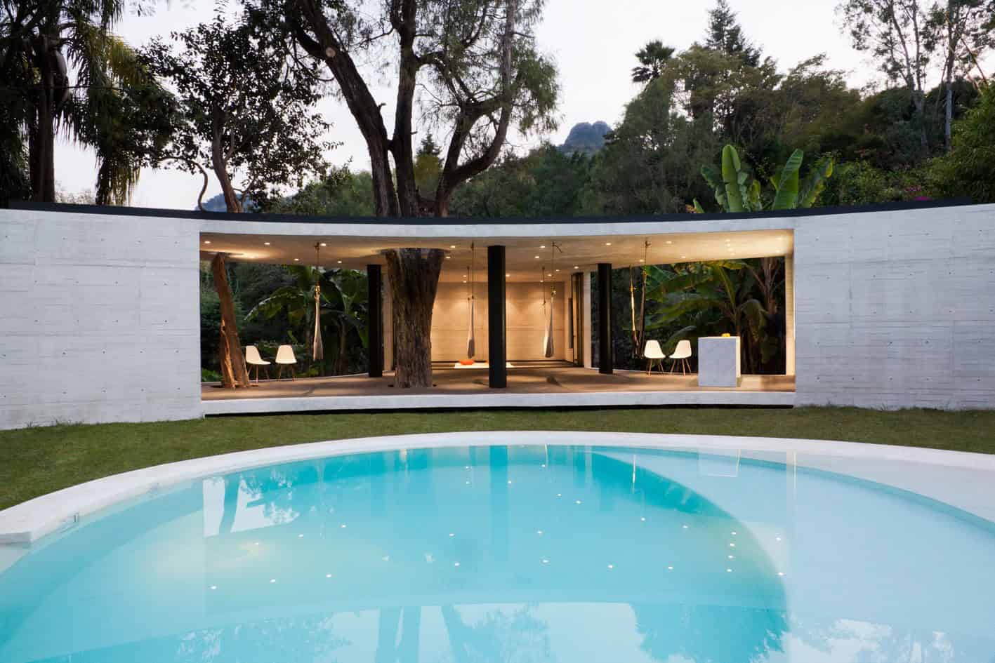 The building is located as a plinth valuing the views of the mountains. The building wants to be respectful to the existing context, and understands that the vegetation and life at open air are the real protagonist. Two impressive trees that are in place are incorporated within the layout of the lounge, as if they were part of the program itself. The Tepoztlan Lounge is constructed in concrete not just for being a inexpensive and labor intensive material in Mexico and to minimize its maintenance, but also to expose its structural simplicity and neutrality towards the astonishing nature.
