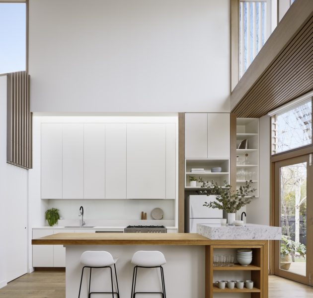 Tess + JJ’s House is located on a small site in a heritage context in South Yarra, Melbourne. The brief was to create a new two-story house that wouldn’t upset the neighbors, on a small footprint with all the amenities needed for a young family of four.