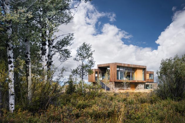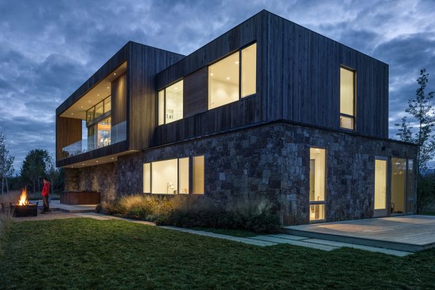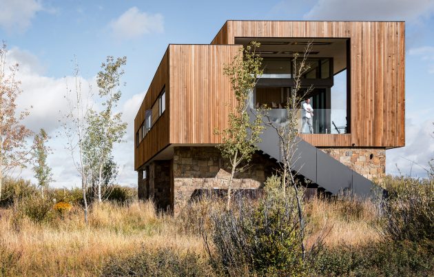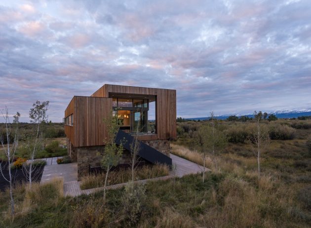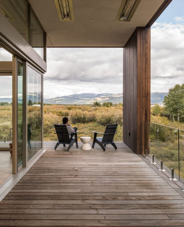 RO | ROCKETT DESIGN have designed the Teton Residence as a contemporary isolated retreat in the remote area of Driggs in Idaho, USA. This 3,300 square feet escape offers spectacular views of the mountainous terrains that surround it. It is clear that nature plays a key role in the design of the Teton Residence. First of all, its location is as remote as it gets, in the heart of nature, but that’s not where it ends. The design of the building intends to minimize its impact on the natural ecosystem.