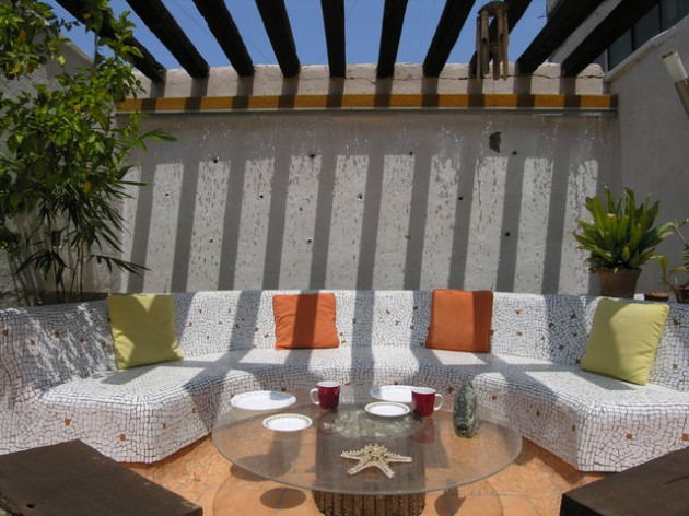 If you edit a larger exterior dimensions, it is best to split it into two zones, one for consumption of food and another for chat and relaxation. In the division of space, can help and attractive screen. Seating for garden and and the required elements, can make the outdoors more comfortable for socializing with family and friends, as well as sunbathing, reading and resting after hard work. They will bring a loose atmosphere that will be certainly complement with the comfort of the soft cushions.