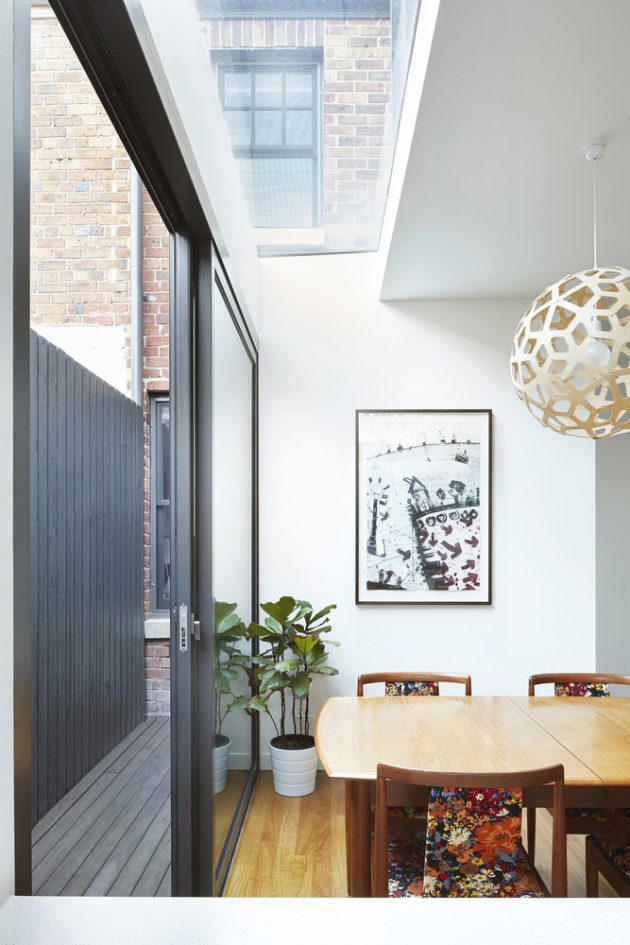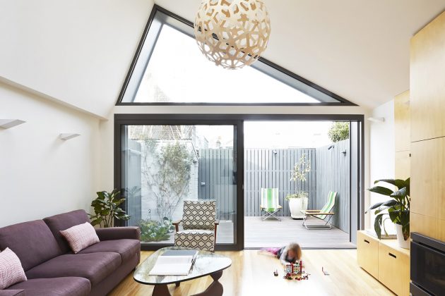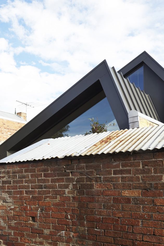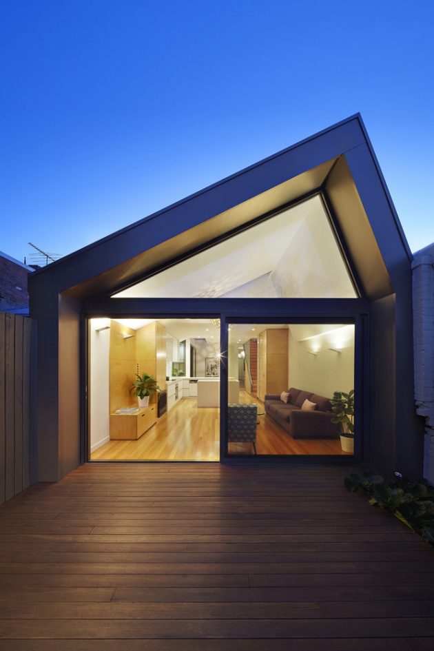 Designed by the Melbourne studio Nic Owen ArchitectsThe Big Little House is a compact, 1,668 sq ft modern residence located in the Fitzroy North neighborhood of Melbourne. It is actually a renovation and extension of an existing mid-terrace house for a couple and their two children. The renovation represents a pair of steel-clad volumes with pitched roofs and glazed gables providing additional living space behind the ornamental facade of the Victorian terrace.