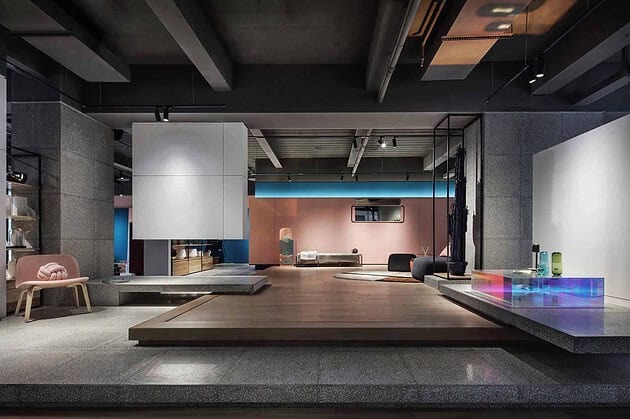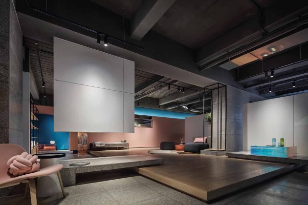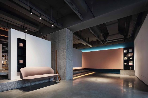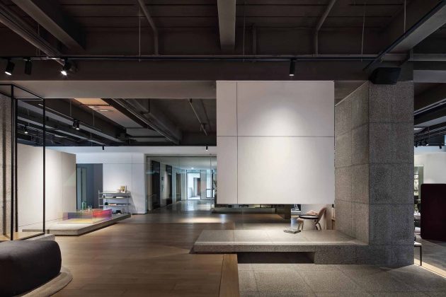 To part away with the concept behind traditional furniture showrooms, the designer created a complete spatial experience imbued in an artistic boutique shop. It is indeed a simple yet open space created by combining the architectural elements of Chongqing’s residences.